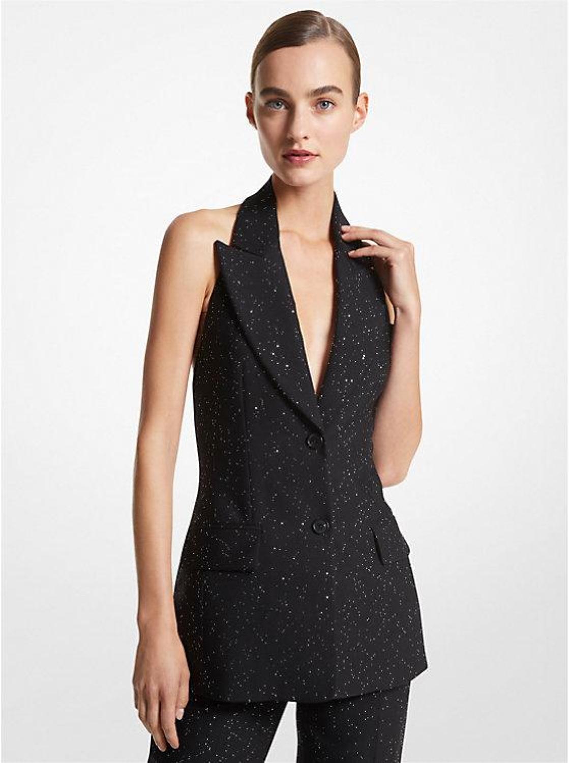 A sophisticated style for the season’s social calendar, this halter jacket is tailored in Italy from a wool blend and detailed with sparkling sequins. Exaggerated peak lapels, a darted bodice and flap pockets complete the menswear-inspired silhouette. Wear it as part of a two-piece in our edit, styling the jacket alone with the matching trousers. Jacket Sequined wool 97% virgin wool/3% polyester Lining: 76% acetate/24% silk Button fastening Dry clean Made in Italy Model is 5’10”/178 cm wearing US size 2 Jacket Sequined wool 97% virgin wool/3% polyester Lining: 76% acetate/24% silk Button fastening Dry clean Made in Italy Model is 5’10”/178 cm wearing US size 2