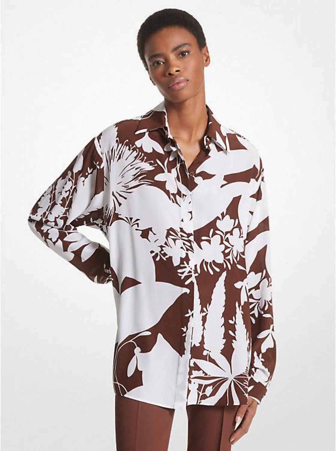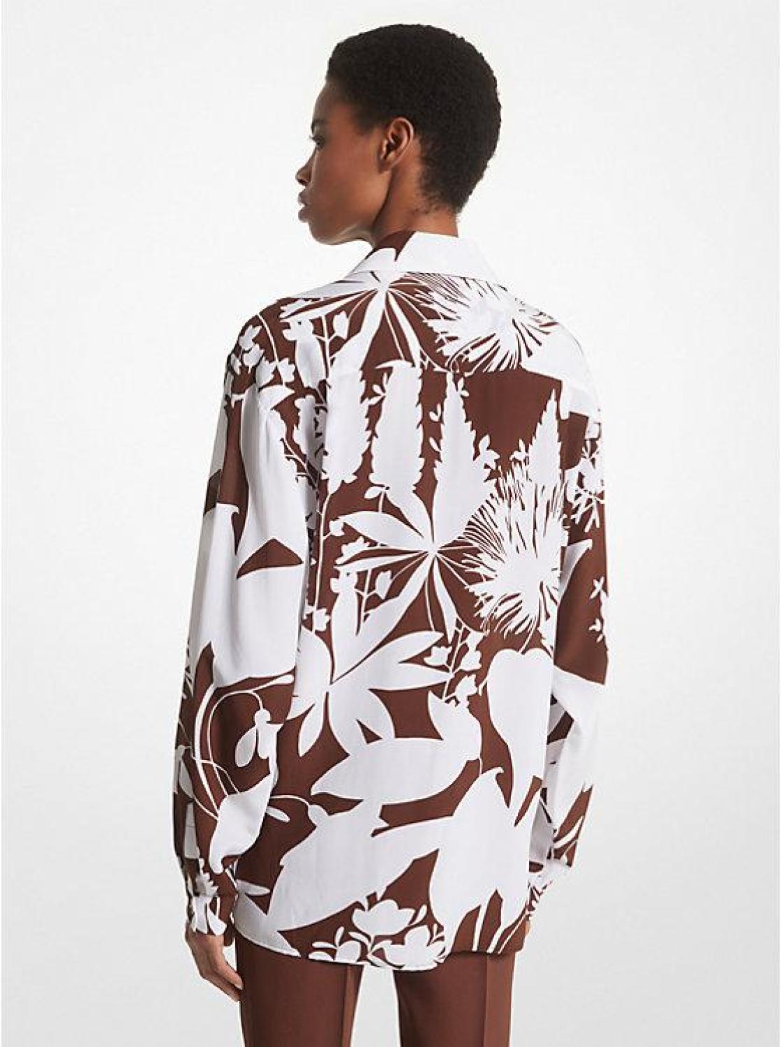 Shadow Floral Silk Crepe De Chine Boyfriend Shirt