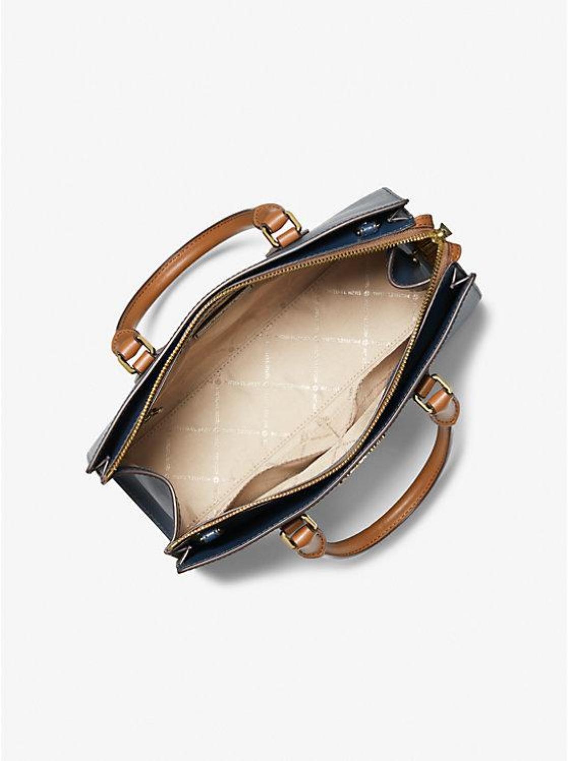 Sheila Medium Two-Tone Faux Saffiano Leather Satchel