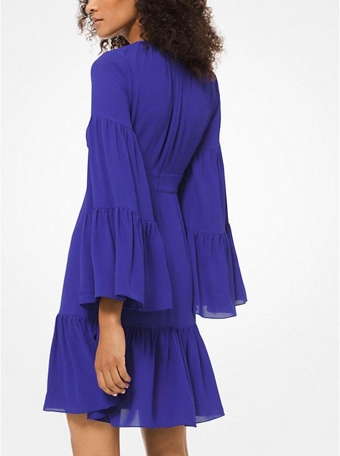 Made in Italy, this breezy peasant dress is cast in luxe silk-georgette in a lapis hue. A delicate tie-neck and tiered sleeves complete the silhouette with soft femininity. Enliven the look with the season’s talking-point accessories.