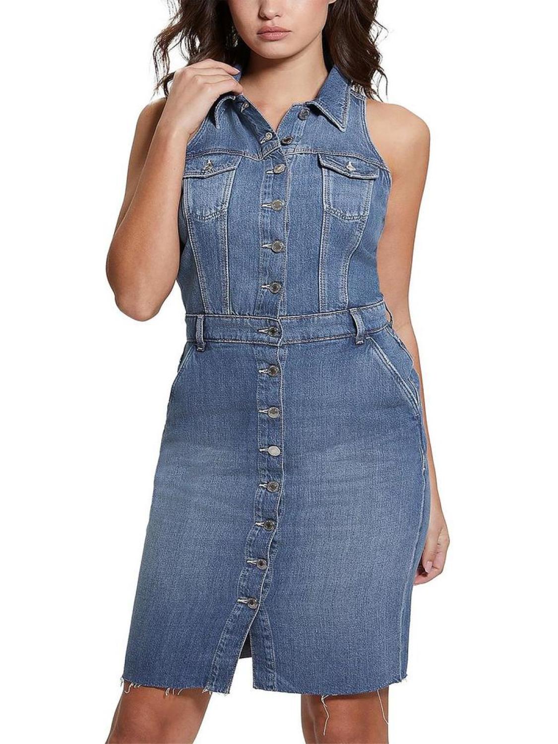 Manufacturer - Guess Retail - $168.00 Style Type - Shirtdress Collection - Guess Sleeve Length - Closure - Button Closure Material - 50% Cotton/50% Lyocell Fabric Type - Denim Specialty - Raw Hem P2794315The item for sale is pictured above and described on this page. The photo may include additional clothing or props that are for display purpose only and will not be included. Please be sure to read the description carefully.