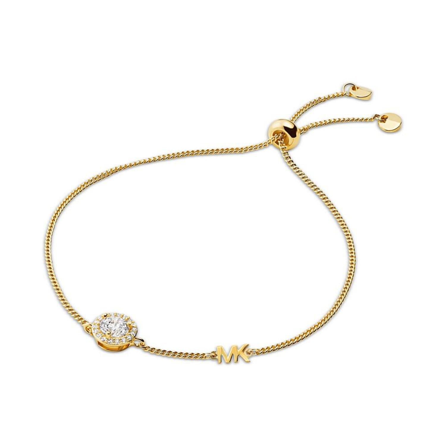 Showcasing a brilliant cubic zirconia, this adjustable slider bracelet by Michael Kors is a welcome element to any ensemble. Set in silver-tone, gold-tone or rose gold-tone sterling silver Approx. adjustable length: 8-1/2" Slide closure Photo may have been enlarged and/or enhanced.