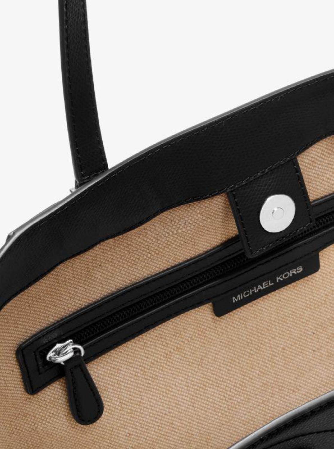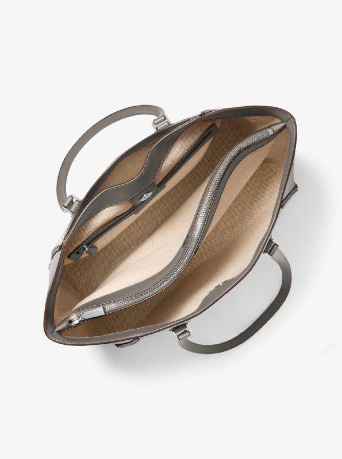 The Taryn tote is a polished staple for workdays, weekends, and every moment in between. Crafted from supple leather, this structured bag features trapeze stitching and a detachable lock charm. It unzips to reveal a spacious interior, complete with side pockets and a center compartment for your tablet or valuables. • Tote bag • Leather • 100% leather • Silver-tone hardware • 17”W X 11.75”H X 6.25”D • Exterior details: back slip pocket • Interior details: back zip pocket, center zip compartment • Lining: 55% polyester/45% linen • Zip fastening • Dust bag not included • Imported • Tote bag • Leather • 100% leather • Silver-tone hardware • 17”W X 11.75”H X 6.25”D • Exterior details: back slip pocket • Interior details: back zip pocket, center zip compartment • Lining: 55% polyester/45% linen • Zip fastening • Dust bag not included • Imported