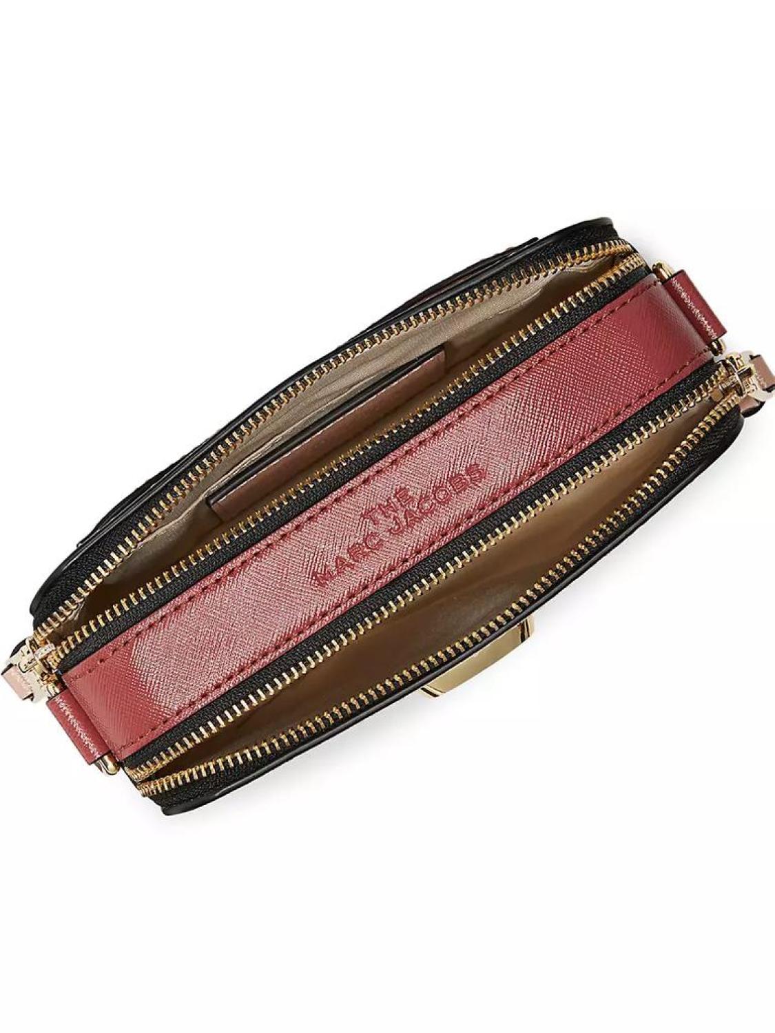 • This camera bag is paired with a removable guitar-style crossbody strap.