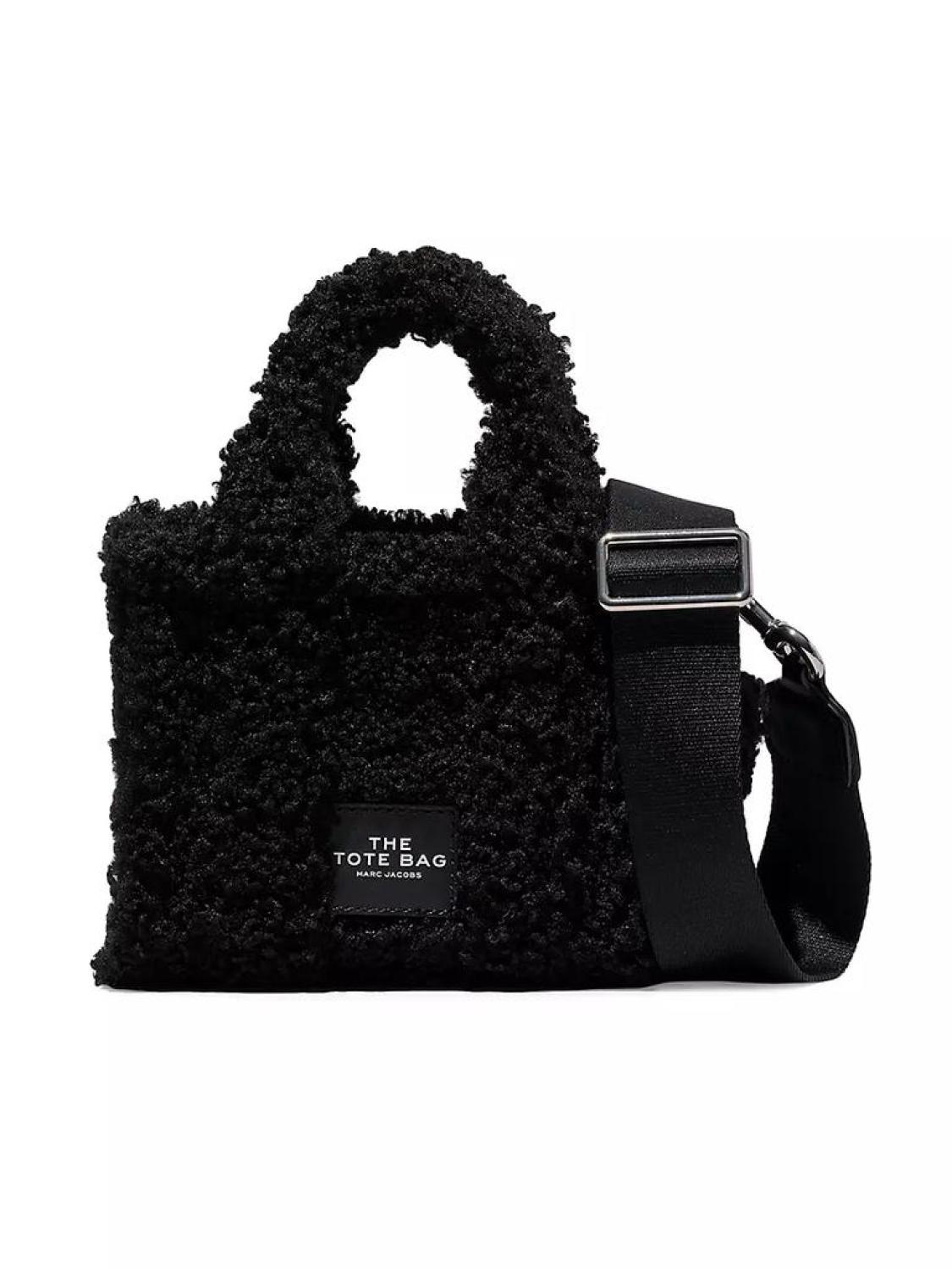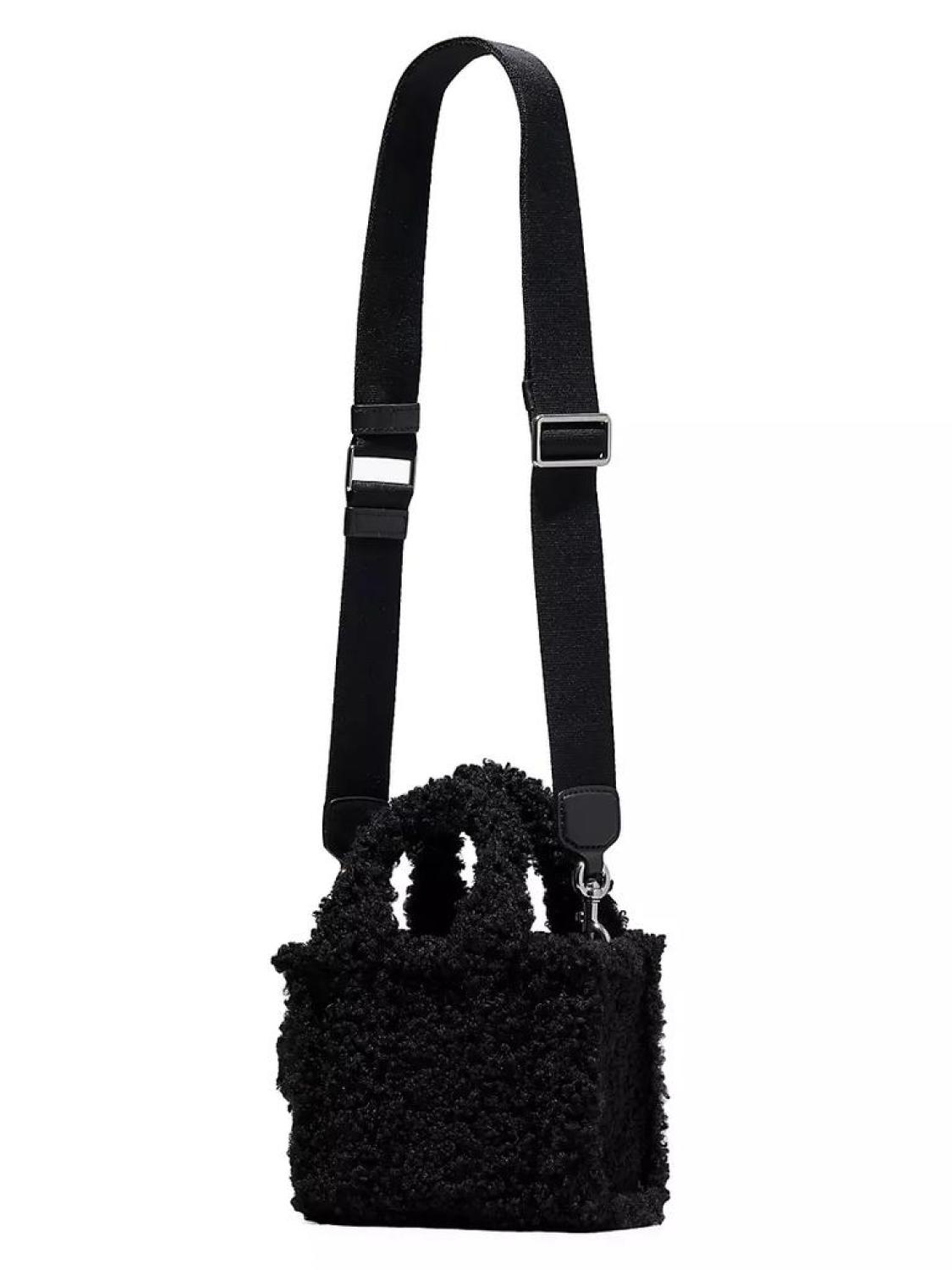 • A perennial favorite, Marc Jacobs' Micro Tote is crafted of plush faux shearling, styled with a signature logo patch. This piece is accompanied by an adjustable strap for hands-free ease.