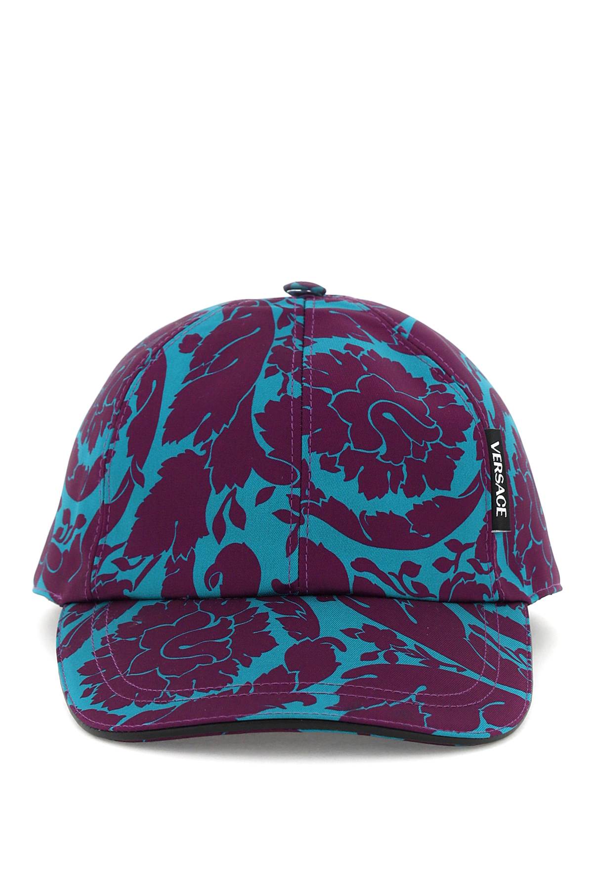 Versace baseball cap made of technical fabric with all-over Barocco Silhoutte print. Side logo patch, cotton-lined interior and adjustable Velcro strap. The item in photo is size 58.