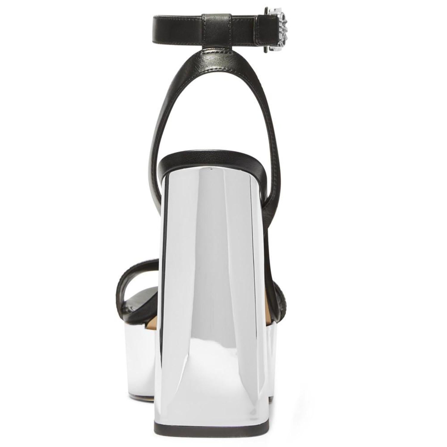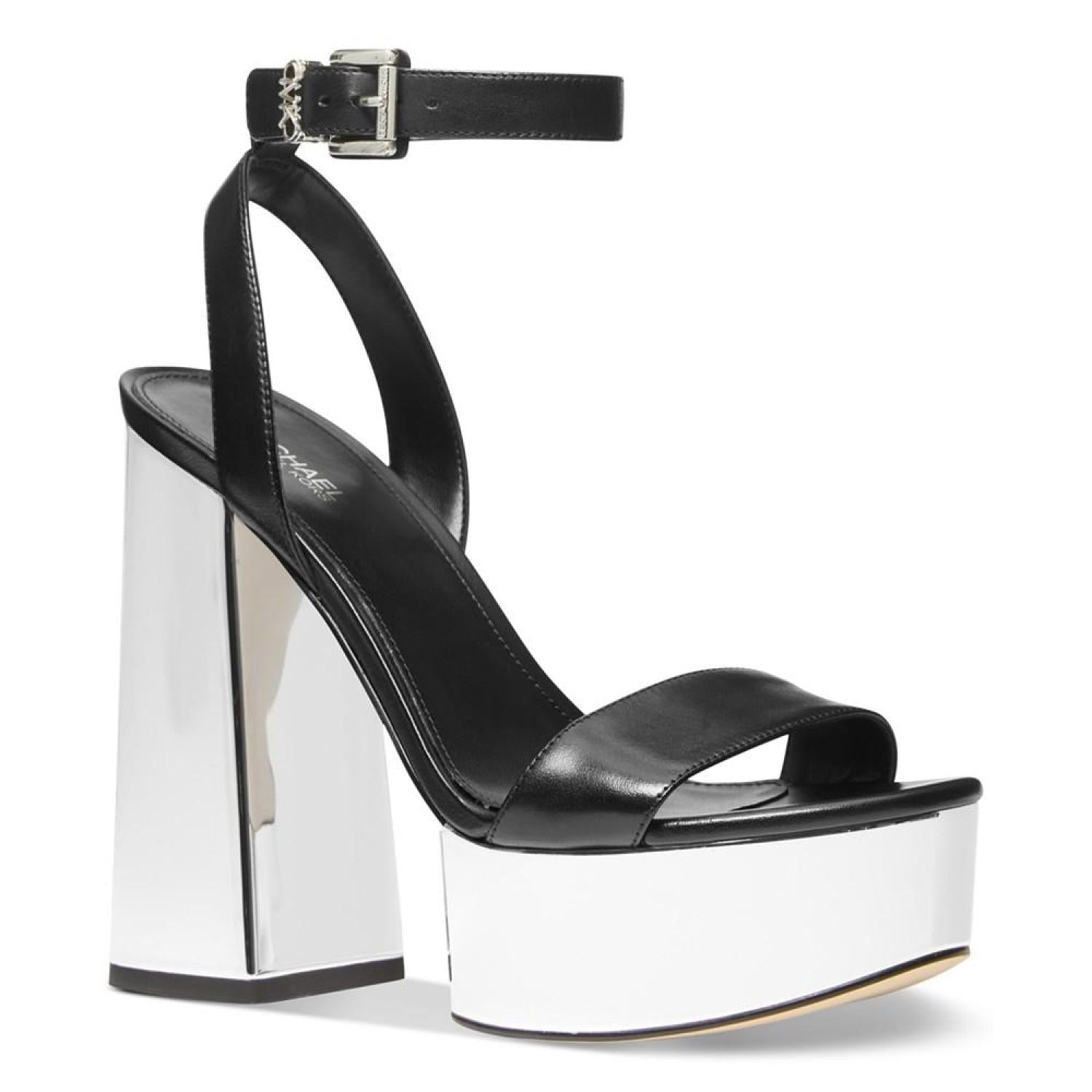 MICHAEL Michael Kors elevates a stylish wardrobe on towering espadrille heels and retro-inspired platforms in the strappy Ashton sandals. 5" espadrille heel; 1-1/4" platform Round toe Buckled ankle strap Leather upper; manmade lining; rubber sole Imported