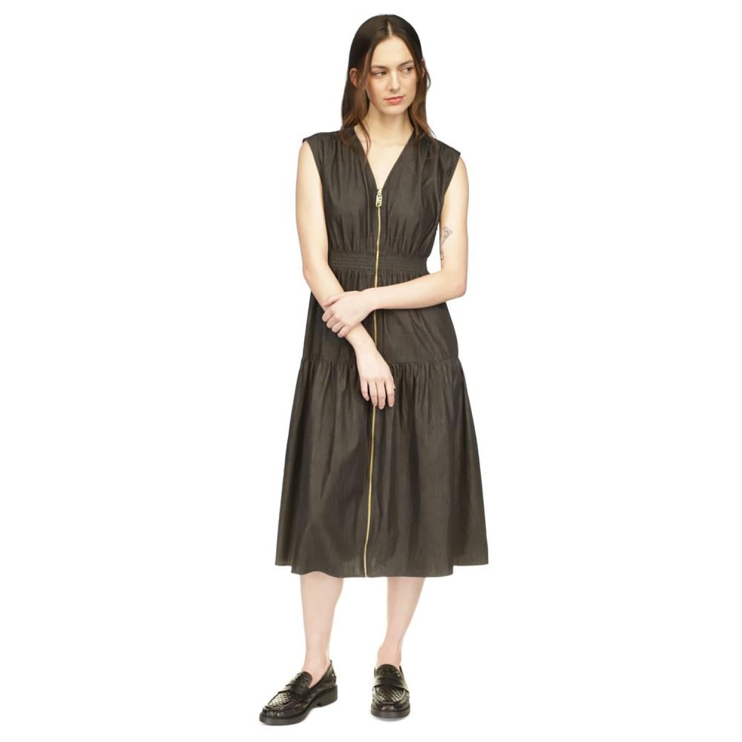 • Opt for sleek and easy elegance with this women's sleeveless empire waist dress from MICHAEL Michael Kors, featuring a convenient zipper closure at the front for a smooth silhouette that's both flattering and stylish.