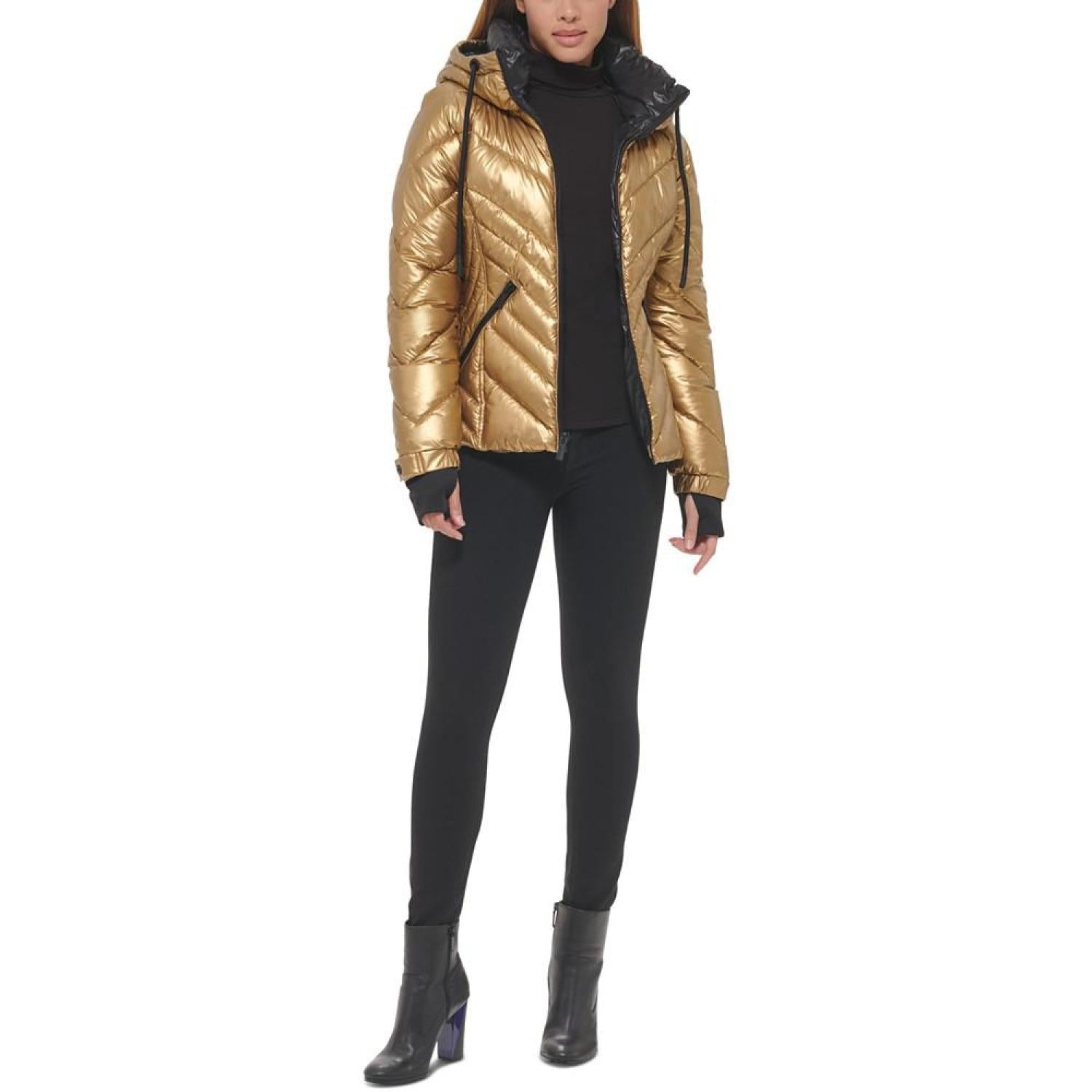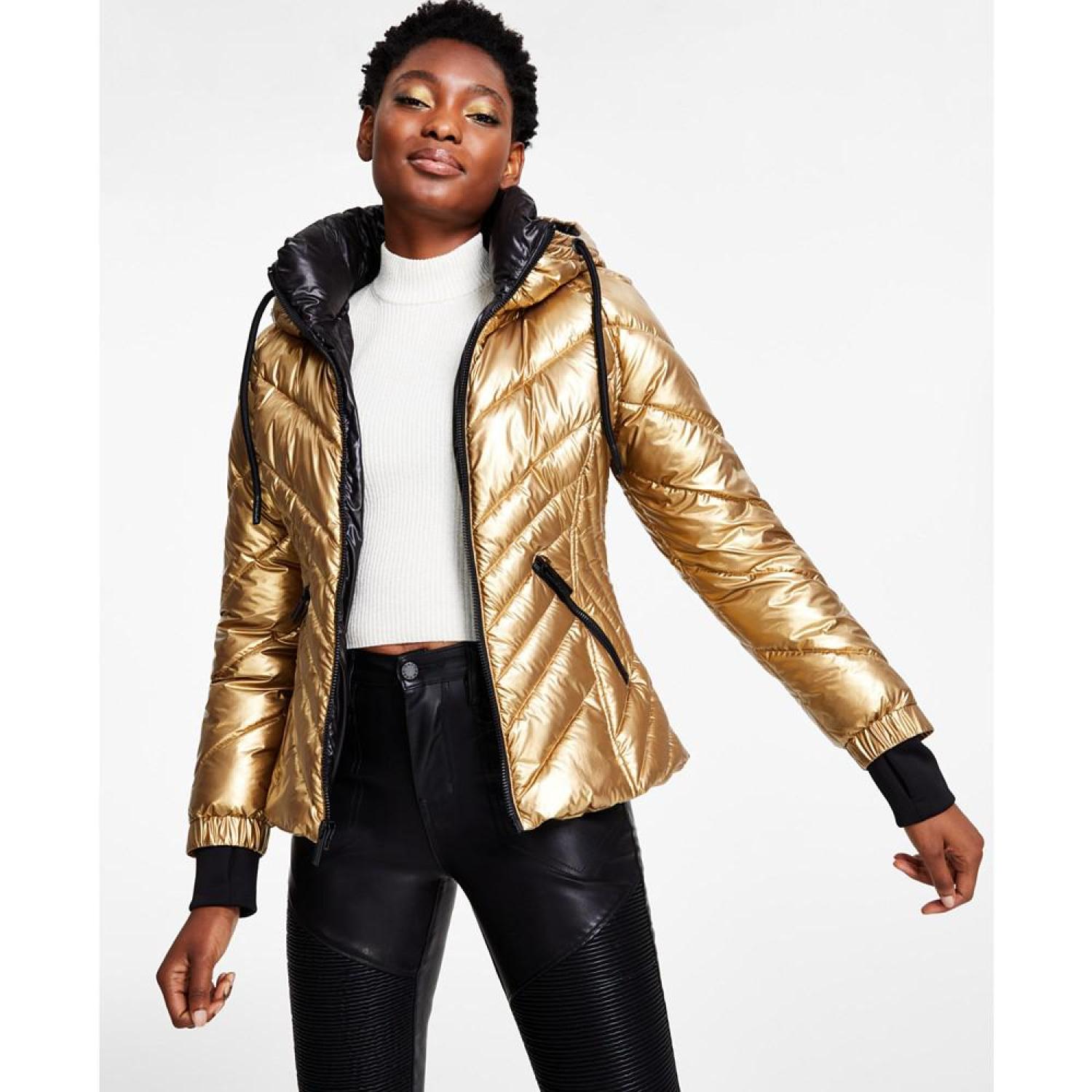 Women's Metallic Quilted Hooded Puffer Coat, Created for Macy's