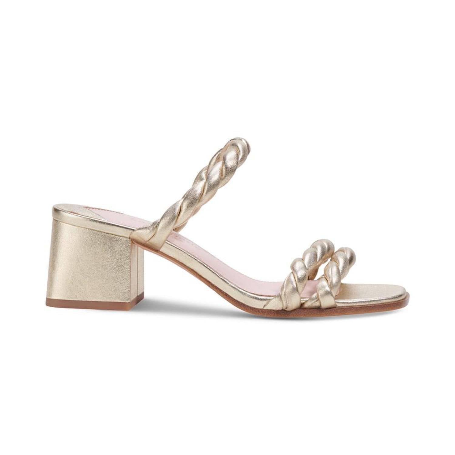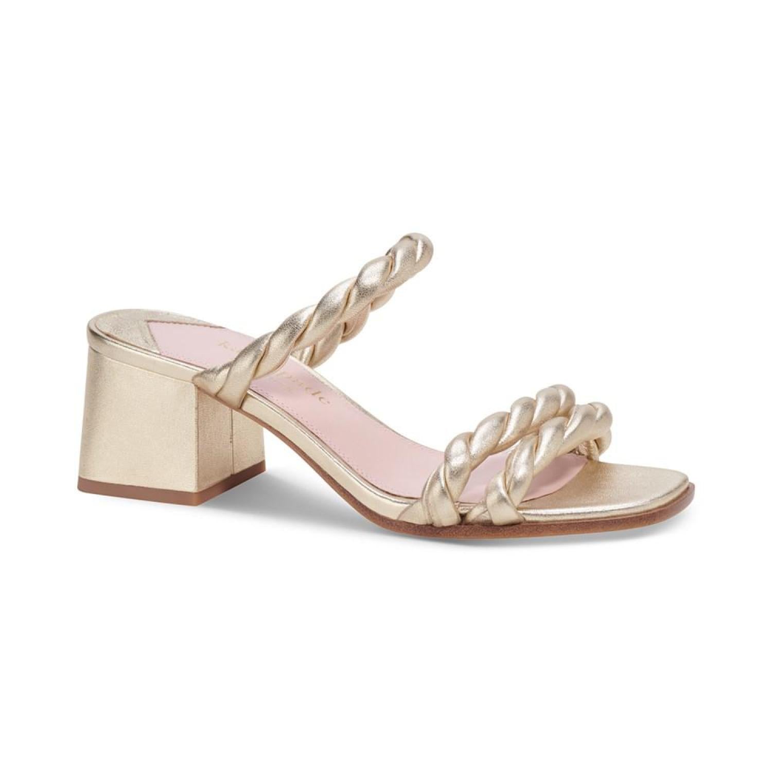 • Slip into a dressy lift in chunky heels and braided straps with the Kate Spade New York Nina sandals.