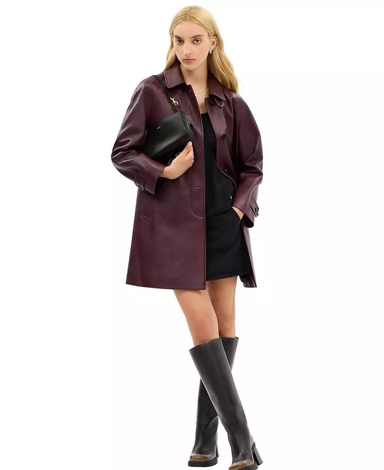 Designed for versatile wear, this COACH handbag is a compact, small-sized bag with a single brass handle. A secure zip-top closure ensures your essentials stay safely inside.