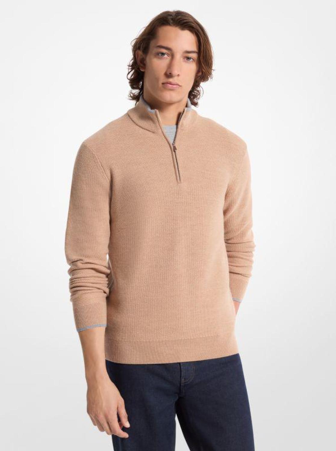 • Ideal for layering, this polished pullover is crafted from soft merino wool. Designed with a half zip neckline for versatile styling and contrast tipping at the collar and cuffs, it’s a refined choice for the office and weekends.