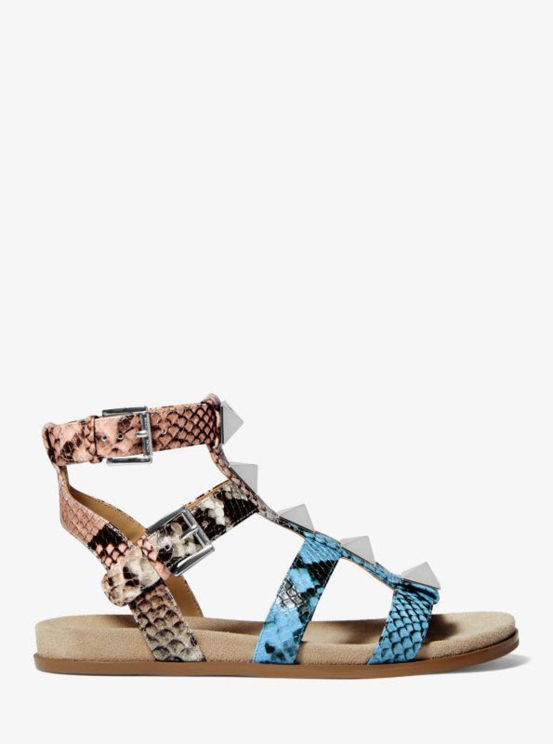 • With its gladiator style and silver-tone studs, the Wren sandal makes casual looks edgy in an instant. This pair is made from ombré snake-embossed leather and rests on a cushioned rubber insole, making them perfect for day-to-night wear. Style them with dresses and separates alike.