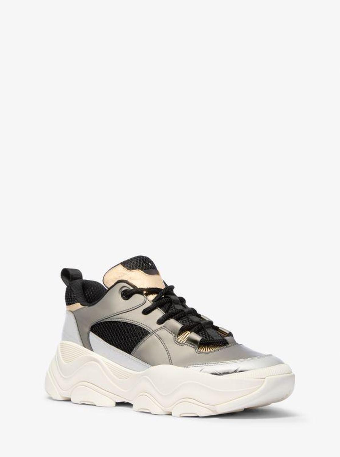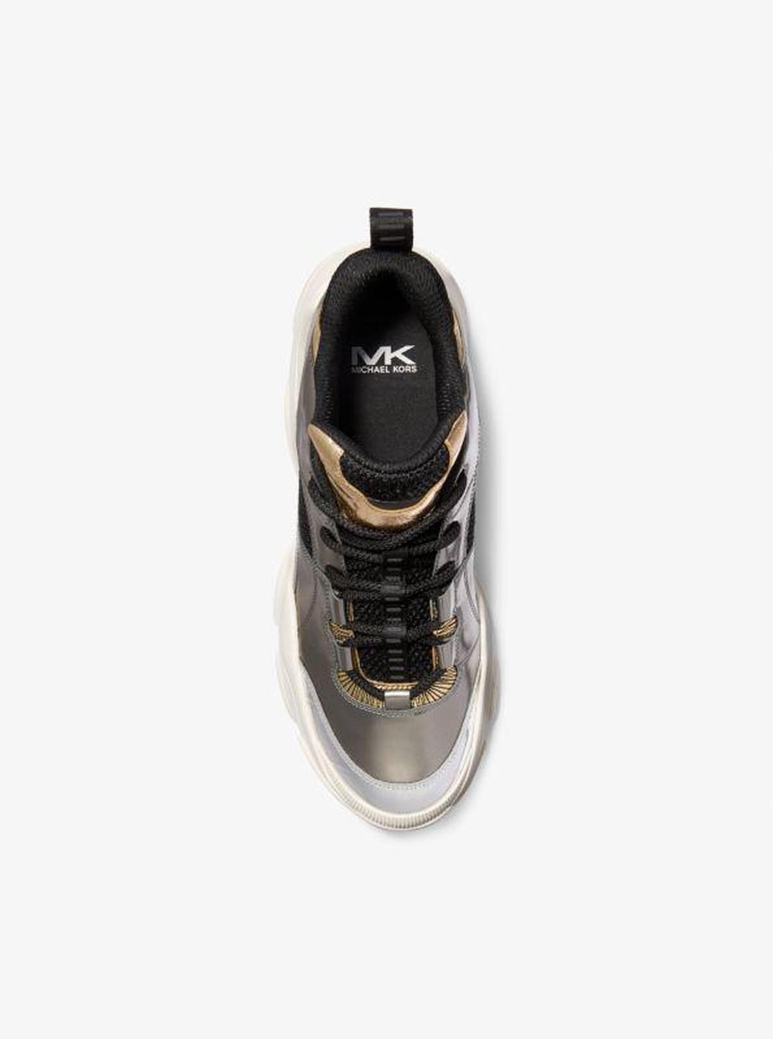 Atlas Color-Block Metallic Leather and Stretch Knit Trainer
