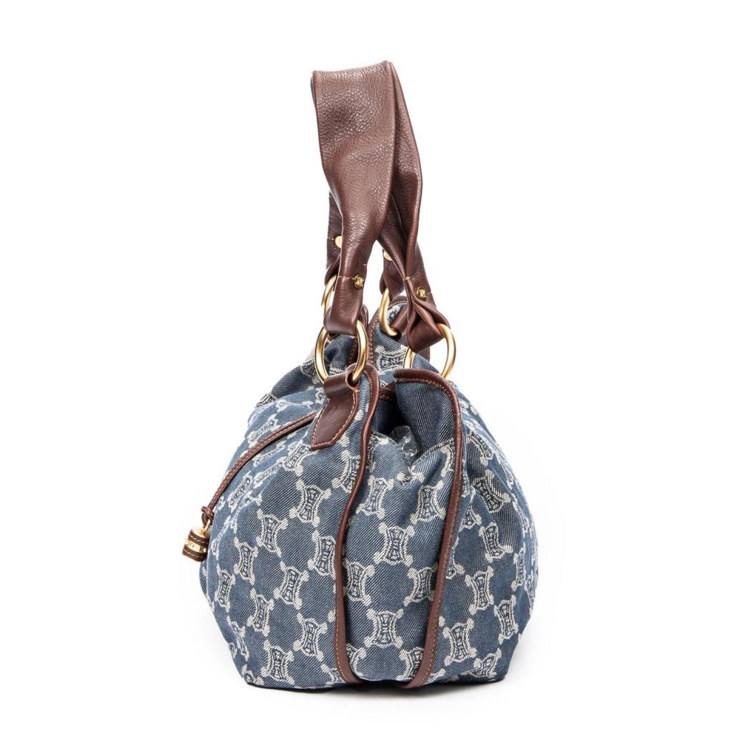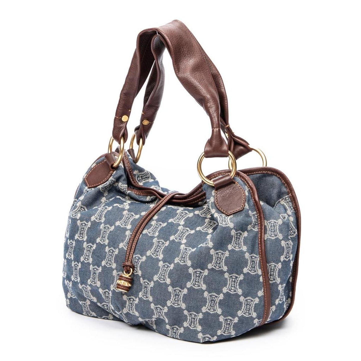 Celine Shoulder Bag in Blue/Brown Macadam Denim Canvas and Gold hardware. Dimensions - 38*25*15cm. Serial number - PP-SA-1027. Inclusions - None. Pre-Owned