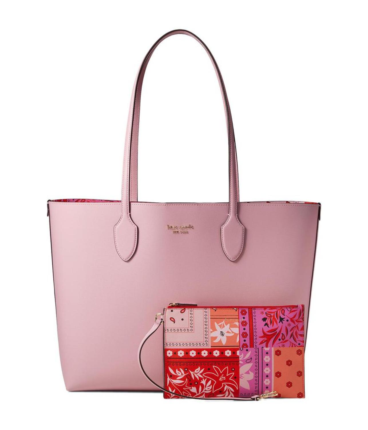 Keep your essentials organized in chic style with the Kate Spade New York® Bleecker Bandana Patchwork Pop Printed Crossgrain Leather Large Tote. Featuring dual shoulder straps, magnetic closure, and a detachable zip pouch with allover bandana patchwork print. Interior allover bandana patchwork print. Branding on front. Materials:Outer: leather;Inner: polyester. Imported. Please note, the hardware color and interior lining may differ from the color shown in the photo. Measurements: Bottom Width: 14 in Depth: 5 1/2 in Height: 12 in Handle Length: 24 in Handle Drop: 11 in Accessory Strap Length: 11 in Weight: 1 lb 14 oz