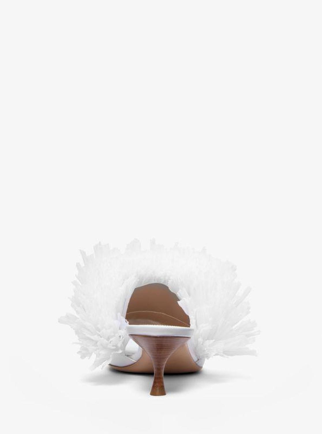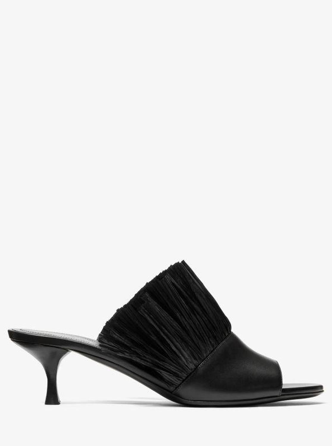 A dramatic ruffle of textured fringe takes the Catarina mule from understated to statement-making. Crafted in Italy from smooth calf leather and set on a stacked kitten heel, this style is a must for your next warm-weather getaway. • Mule • Leather • 100% leather • Trim: 100% viscose • Sole: leather • Open toe • Slip on • Heel height: 2" • Heel type: stacked • Made in Italy • Mule • Leather • 100% leather • Trim: 100% viscose • Sole: leather • Open toe • Slip on • Heel height: 2" • Heel type: stacked • Made in Italy