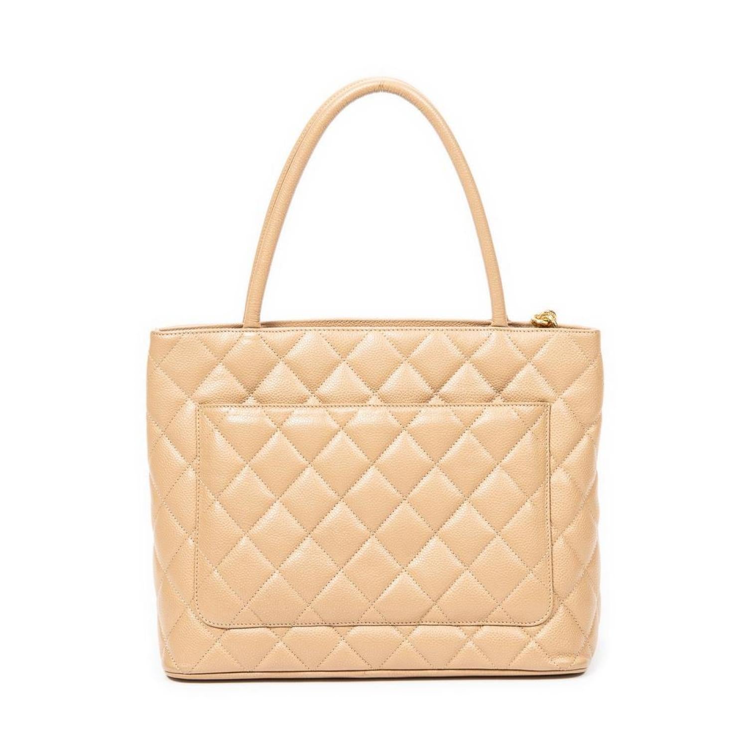 Chanel Shoulder Bag in Beige Quilted Caviar Leather and Gold hardware. Dimensions - 30*24*15cm. Serial number - 6862162 (2000-2002). Inclusions - "Sticker, Card".