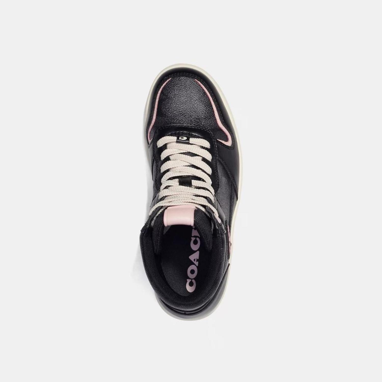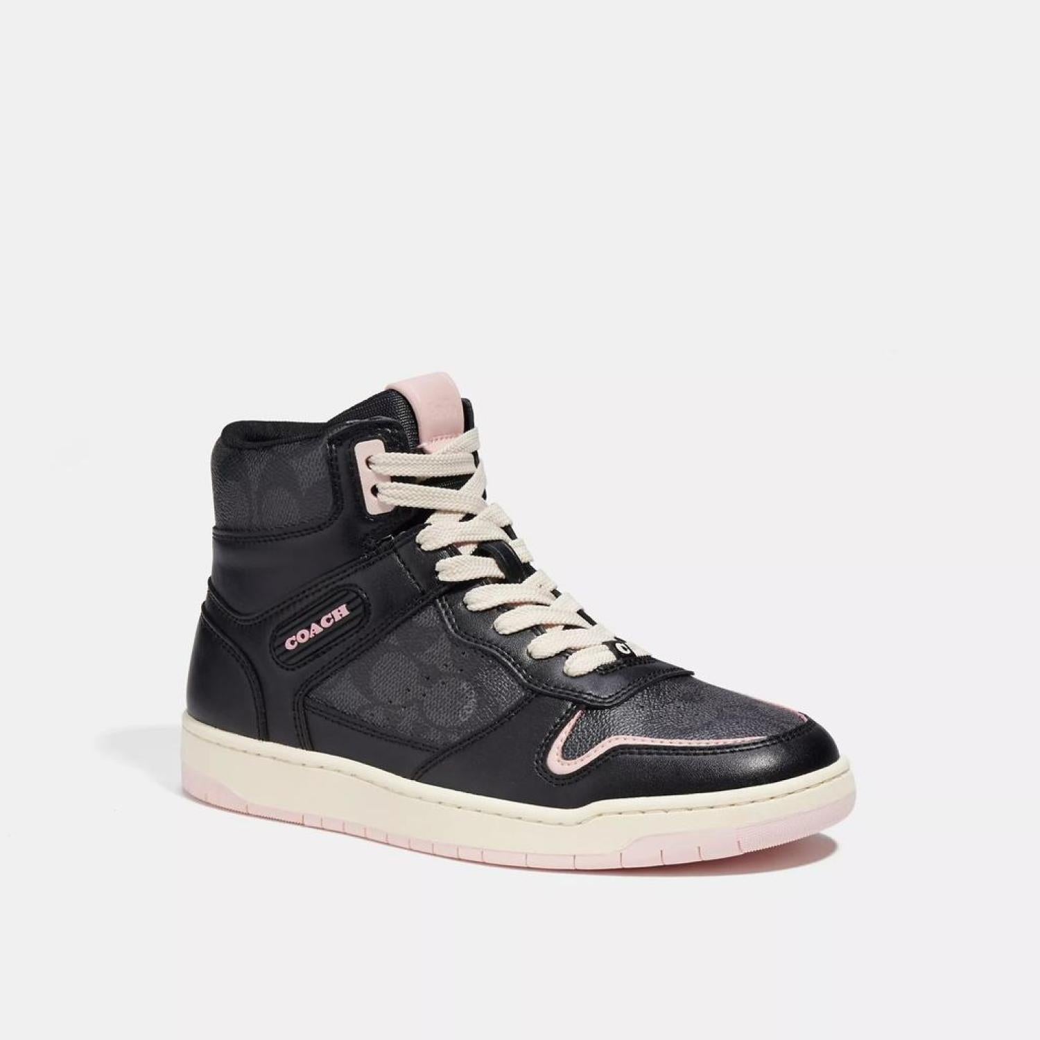• Leather Signature coated canvas and rubber upper Fabric lining and footbed Rubber outsole Lace-up closure Style No. CD304 | Coach Outlet High Top Sneaker In Signature Canvas - Black, Size - 5.5