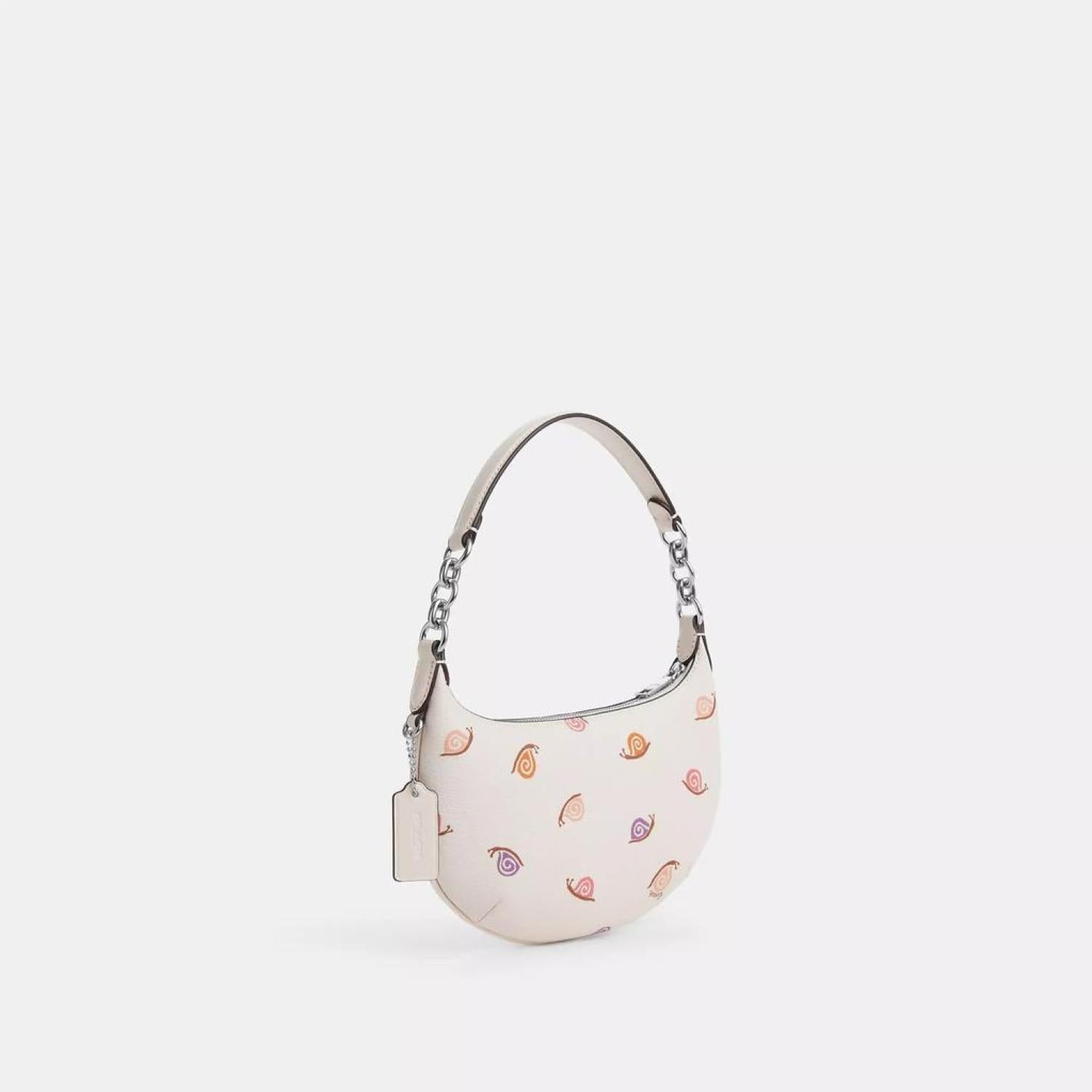Printed coated canvas and smooth leather Inside multifunction pocket Zip-top closure fabric lining Handle with 6 drop 8 1/2 (L) x 6 (H) x 1 1/4 (W) Style No. CV275 | Coach Outlet Mini Payton With Snail Print - White