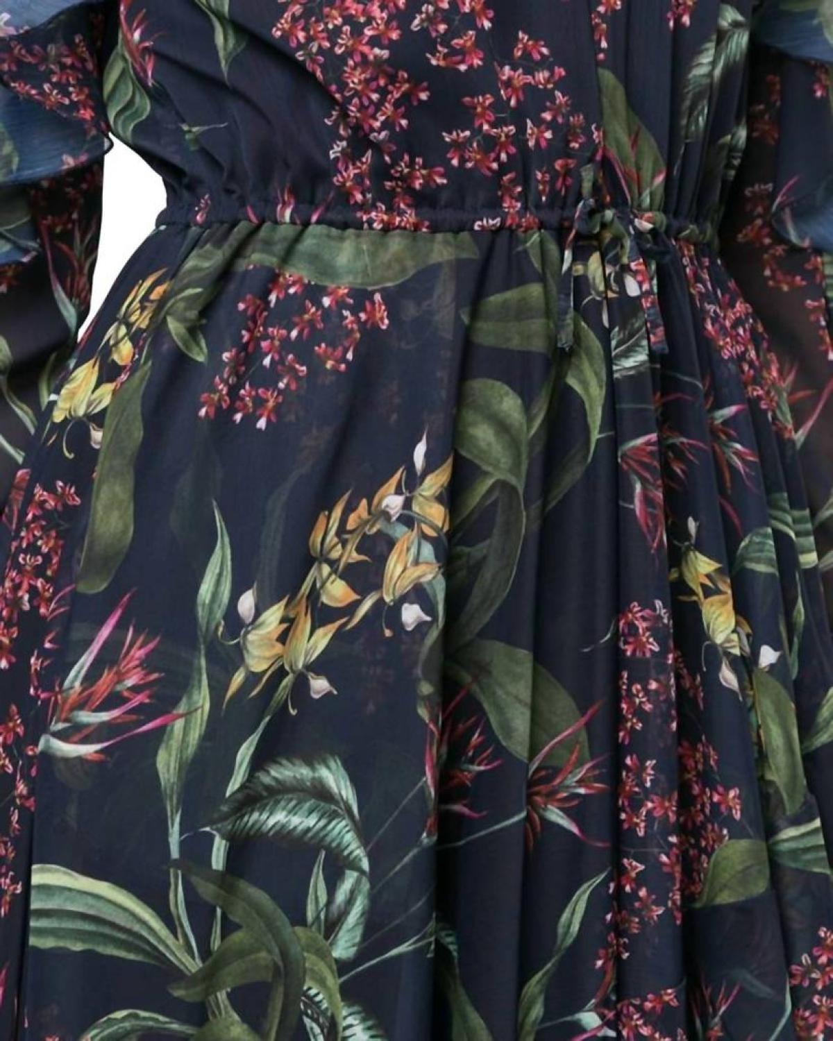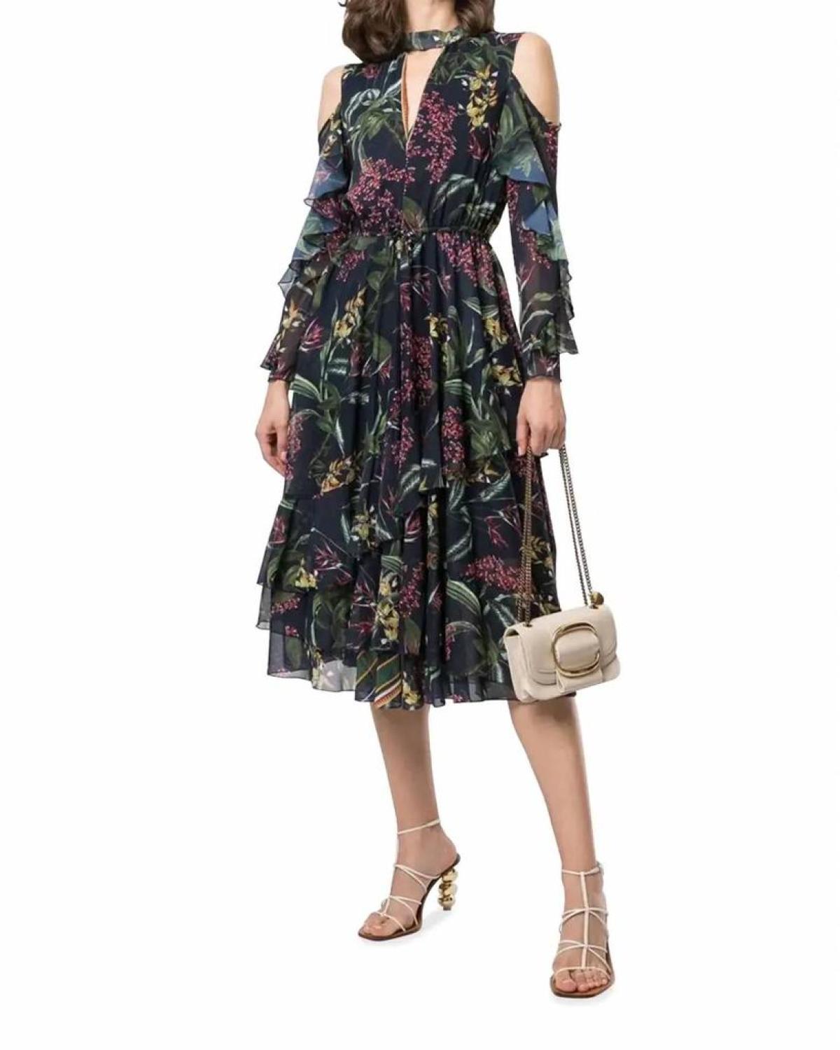 • The perfect length dress does exist.Floral print. Long sleeve. Crew neck. Concealed zip closure at back. Dry clean.