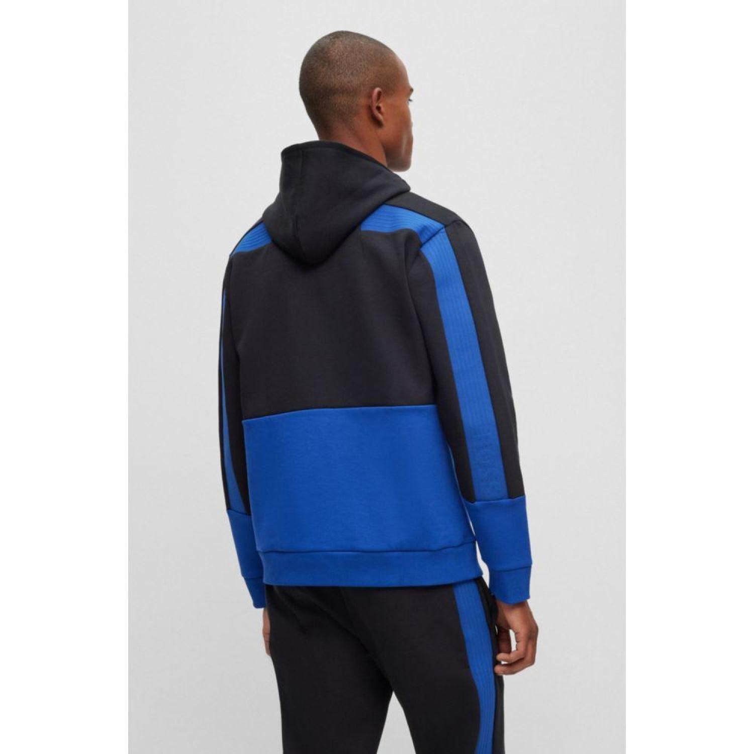 A color-blocked zip-up hooded sweatshirt by BOSS Menswear, cut to a straight fit in a stretch-cotton blend with an embroidered logo.