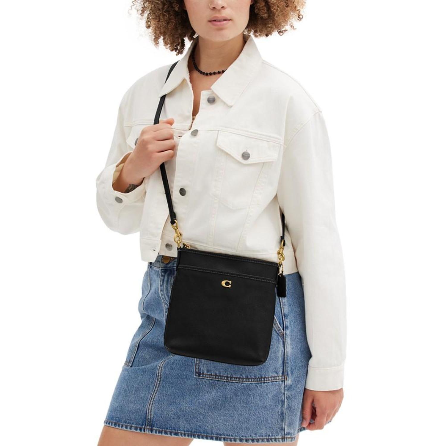 The COACH Crossgrain Leather Crossbody boasts a perfectly portable silhouette for a full day of adventure. Small sized bag; 7-3/4"W x 8-3/4"H x 1"D (width is measured across the bottom of the bag) Silhouette is based off 5'9" model 23"L removable strap Zippered closure Silver-tone hardware, exterior pocket Interior slip pocket Leather; lining: polyester Professional leather clean Imported
