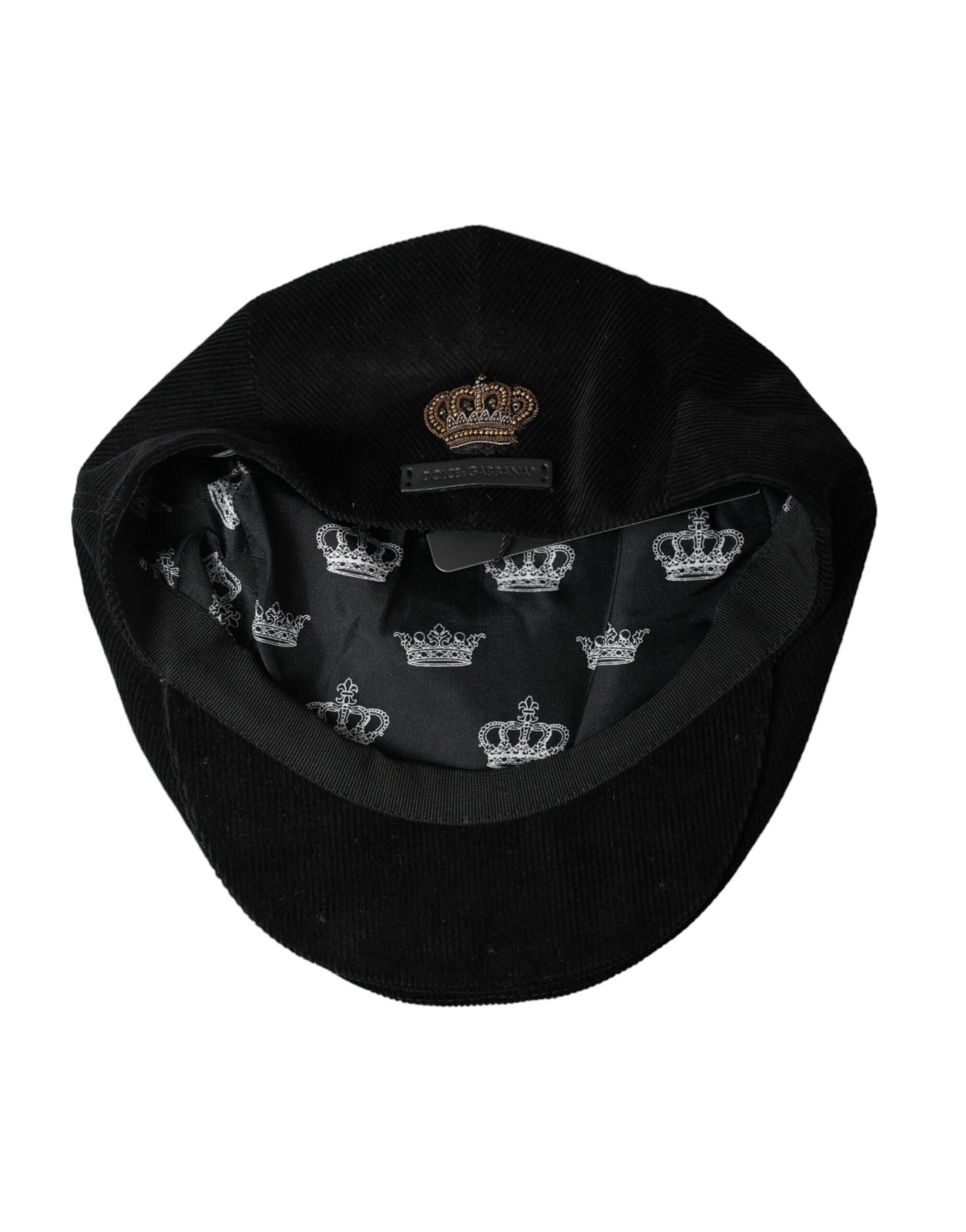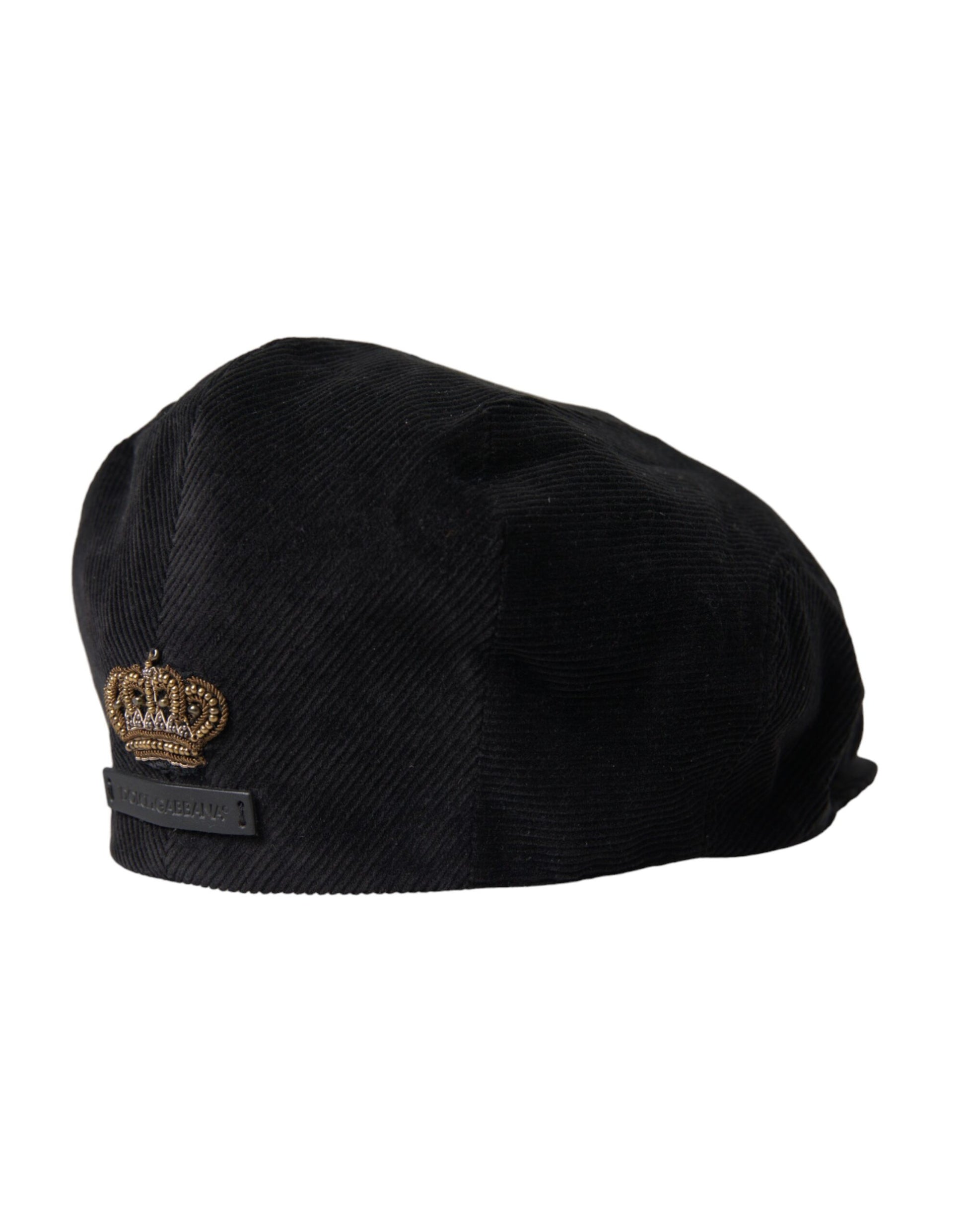 Dolce & Gabbana Black Corduroy Crown Newsboy Hat Men