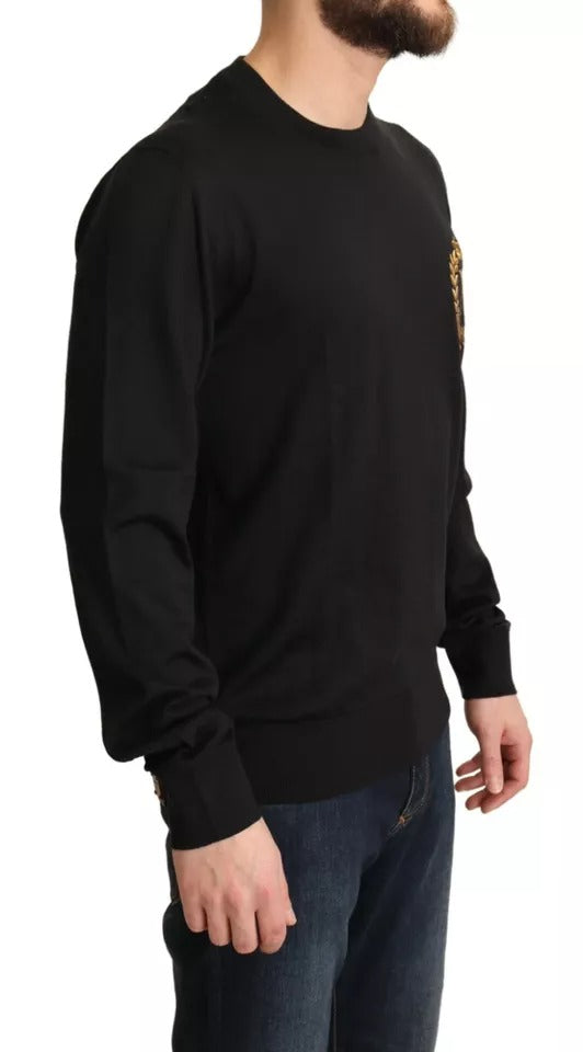 Dolce & Gabbana Black Wool Silk Napoleon Gold Sweater