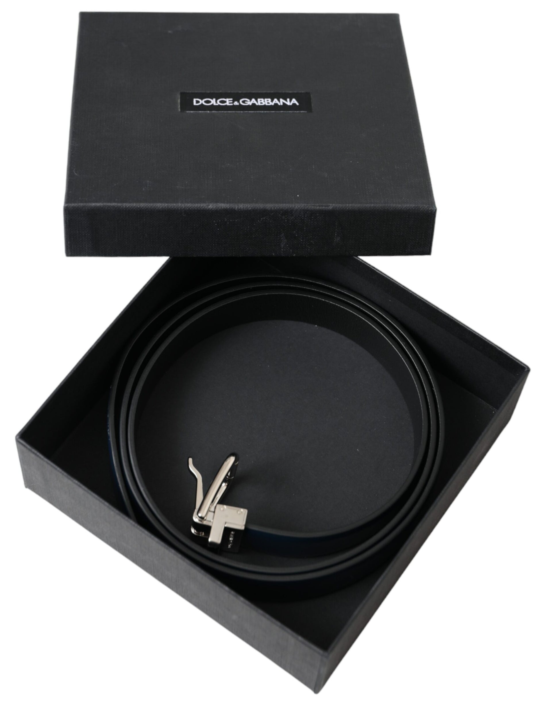 Dolce & Gabbana Blue Calf Leather Silver Metal Buckle Belt Men