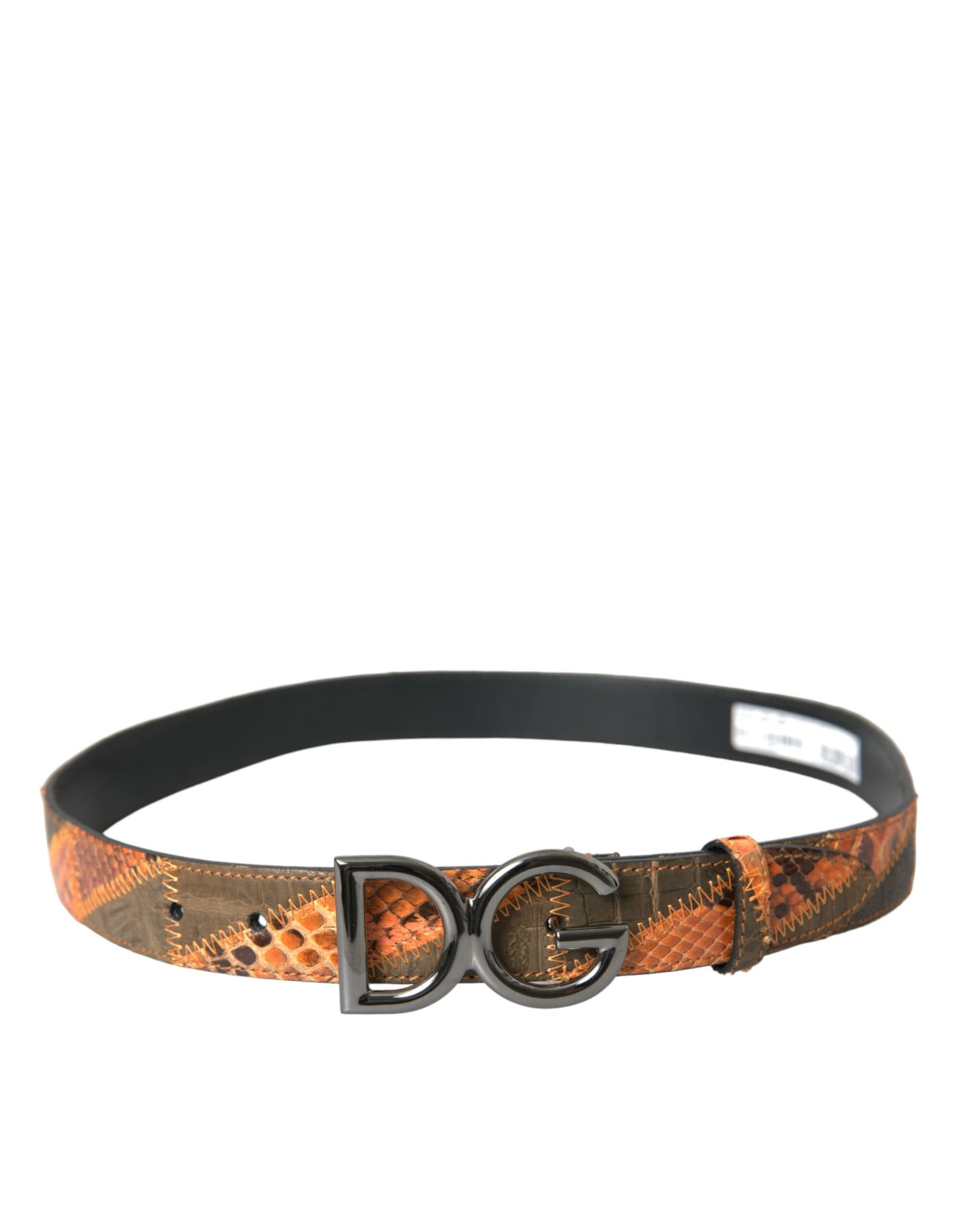 Dolce & Gabbana Patchwork Python Leather Logo Buckle Belt Men