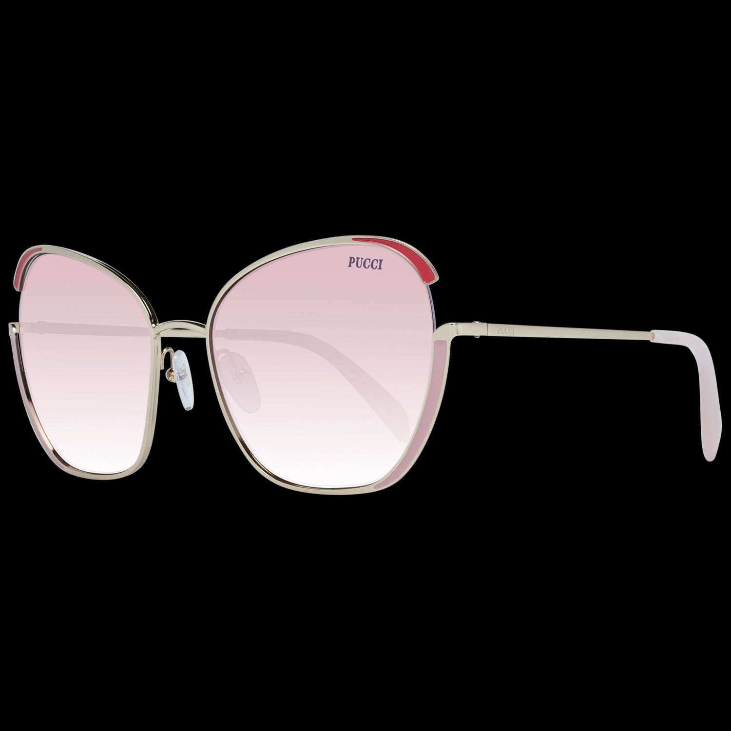 Gender Women Main color Gold Extra No extra Frame color Gold Frame material Metal Lenses color Rose Lenses material Plastic Filter category 2 Style Butterfly Lenses effect Gradient Protection 100% UVA & UVB Größe 58-19-135 Lenses width 58 Lenses height 54 Bridge width 19 Frame width 150 Temples length 135 Shipment includes Branded case Spring hinge No -