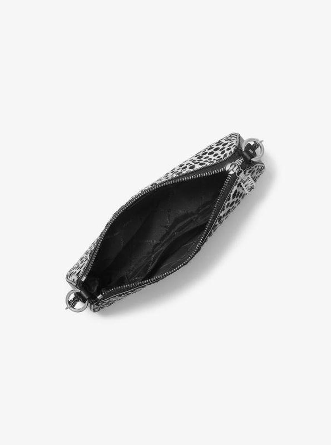 • The Empire pochette bag is an everyday essential—and the epitome of modern glamour. Made from cheetah-print calf hair, the compact silhouette fits your phone, cardholder, sunglasses and a little extra. Match the rest of your accessories to the silver-tone chain strap.