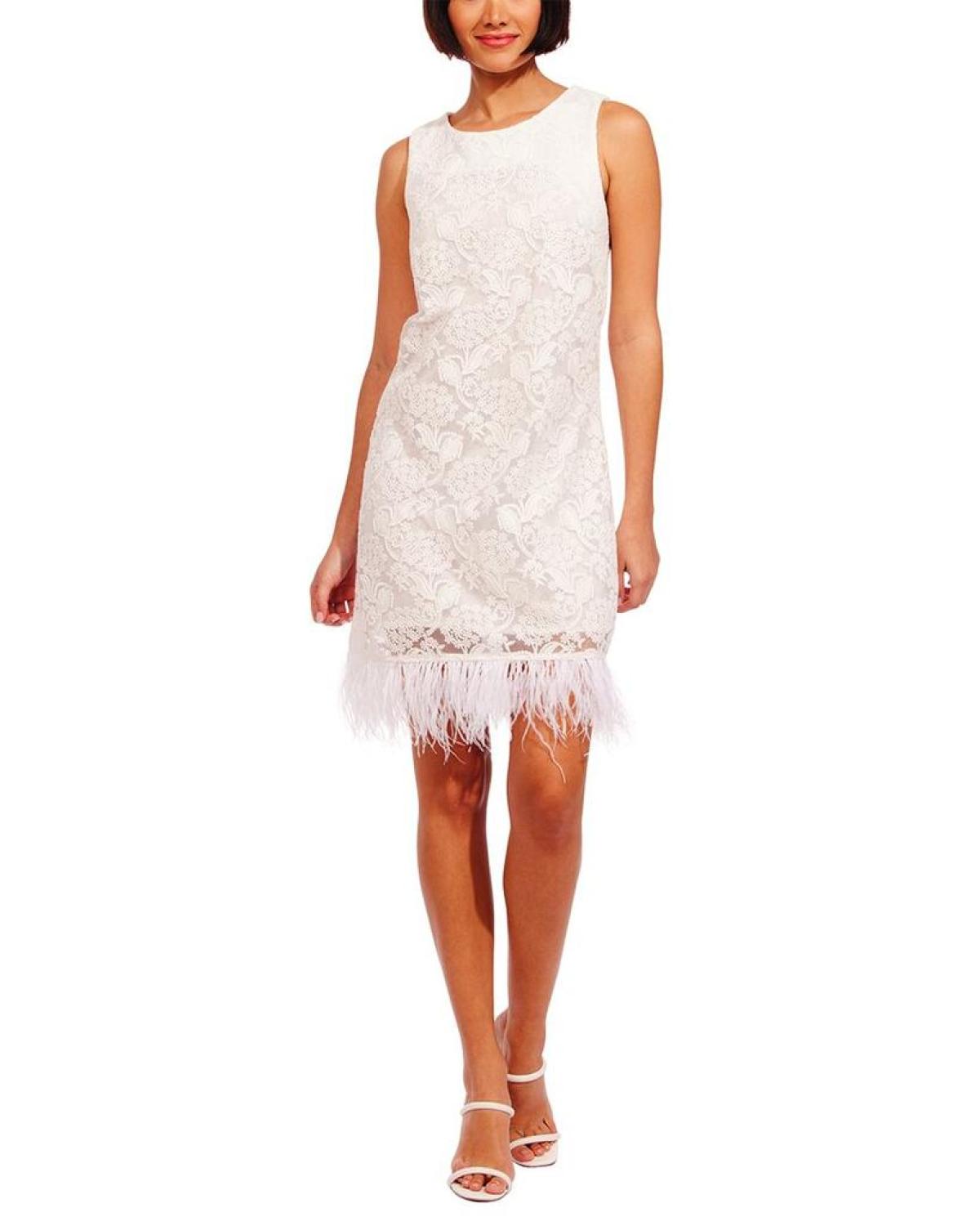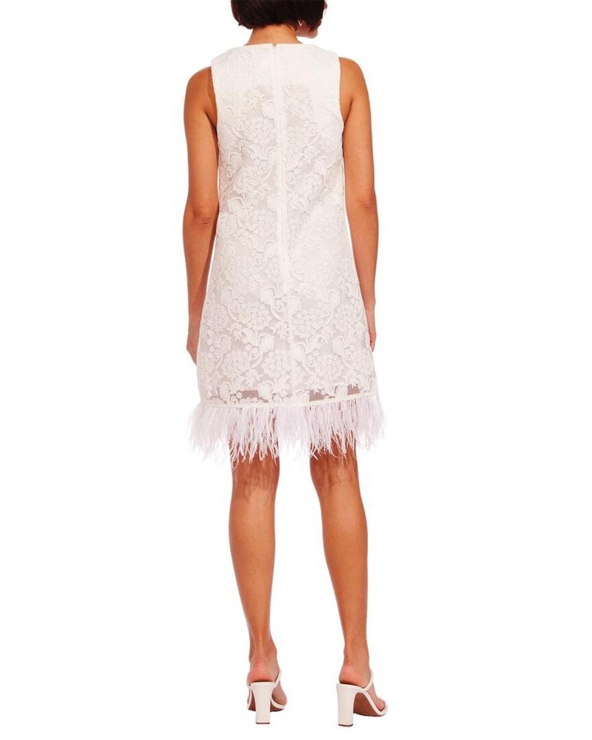 • Introducing the stunning Eva Franco Narcisse Dress in Lily Of The Valley. This exquisite shift dress features intricate white feather trim and elegant embroidery, making it a standout piece for any special occasion. Crafted from 100% polyester with a silky lining, this sleeveless dress is designed to flatter your figure. Complete with a back zipper for easy wear, this dress measures approximately 35.5 inches from shoulder to hem. Made in the USA, this dress is a truly luxurious addition to your wardrobe. Dry clean only to maintain its pristine condition. Elevate your style with the Eva Franco Narcisse Dress.