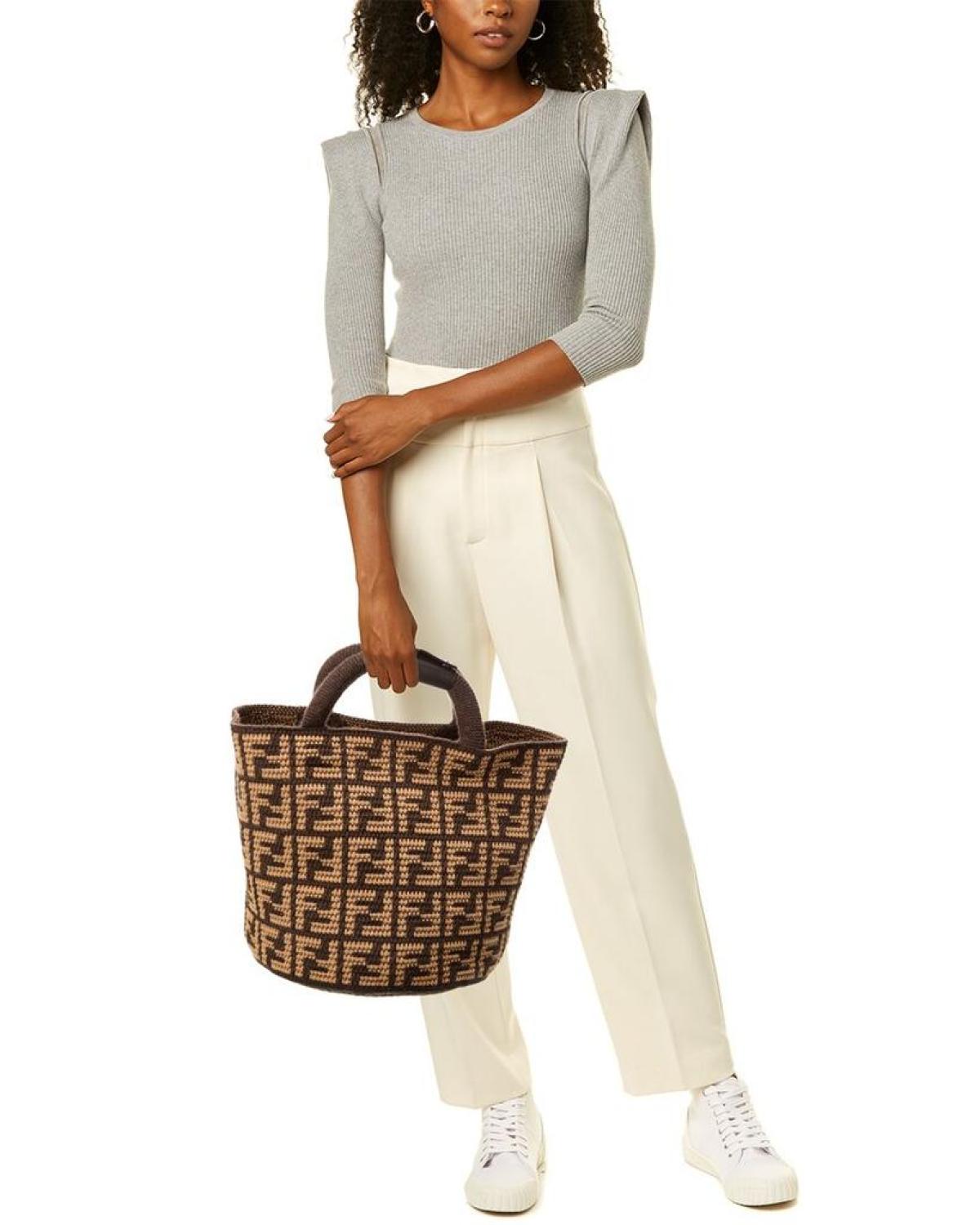 Introducing the FENDI FF Cashmere Shopping Tote - the epitome of innovative and elegant Italian luxury. Made in Italy with utmost craftsmanship, this stunning tote bag is a must-have for all stylish women. The FENDI FF Cashmere Shopping Tote features a distinctive brown FF motif jacquard cashmere design, complemented by silver-tone hardware for a touch of sophistication. Its spacious interior is unlined, allowing you to easily organize your essentials without compromising on style.Measuring at 16.5 inches wide, 12.5 inches high, and 11.8 inches deep, this tote bag provides ample space for all your belongings. Its top handles have a drop of 3 inches, ensuring comfortable and effortless carrying. The open top design allows for easy access to your items, making it perfect for your everyday needs.Please note, all measurements were taken by hand and are approximate. Slight variations may occur due to the handcrafted nature of this product. However, rest assured that our products are 100% genuine. In some cases, we source our merchandise from trusted independent suppliers, ensuring the authenticity of every product sold on our site.Make a statement with the FENDI FF Cashmere Shopping Tote and experience the luxury and style synonymous with the FENDI brand. Shop now and guarantee yourself a fashionable Christmas gift that exudes timeless elegance.