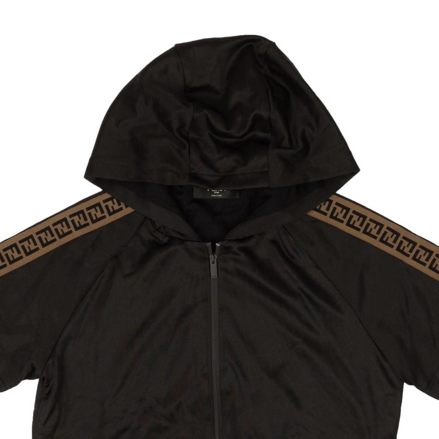 Men's Bomber Jacket Black Short Sleeves Brown Logo Print on Shoulders Zip Up Front Pockets Cinched Hem 100% Polyamide Made in Italy 95-FND-0001FAF563 AAY2 F0GME