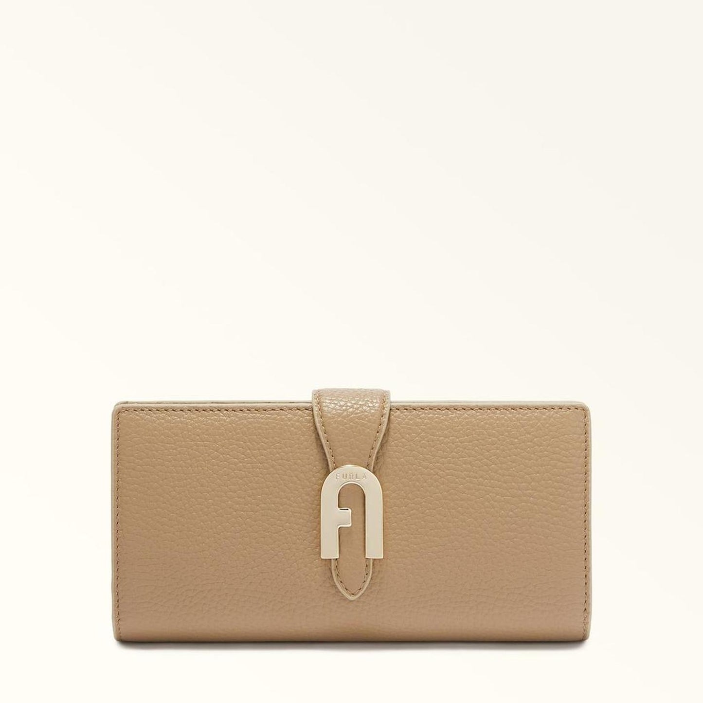 • With an elegant design in precious grained leather, the Furla Sofia Grainy continental wallet is decorated with the iconic Arch logo and makes a practical accessory for holding your banknotes and cards. Its spacious and thoughtfully organised interior makes it an everyday must-have for slipping into your bag.