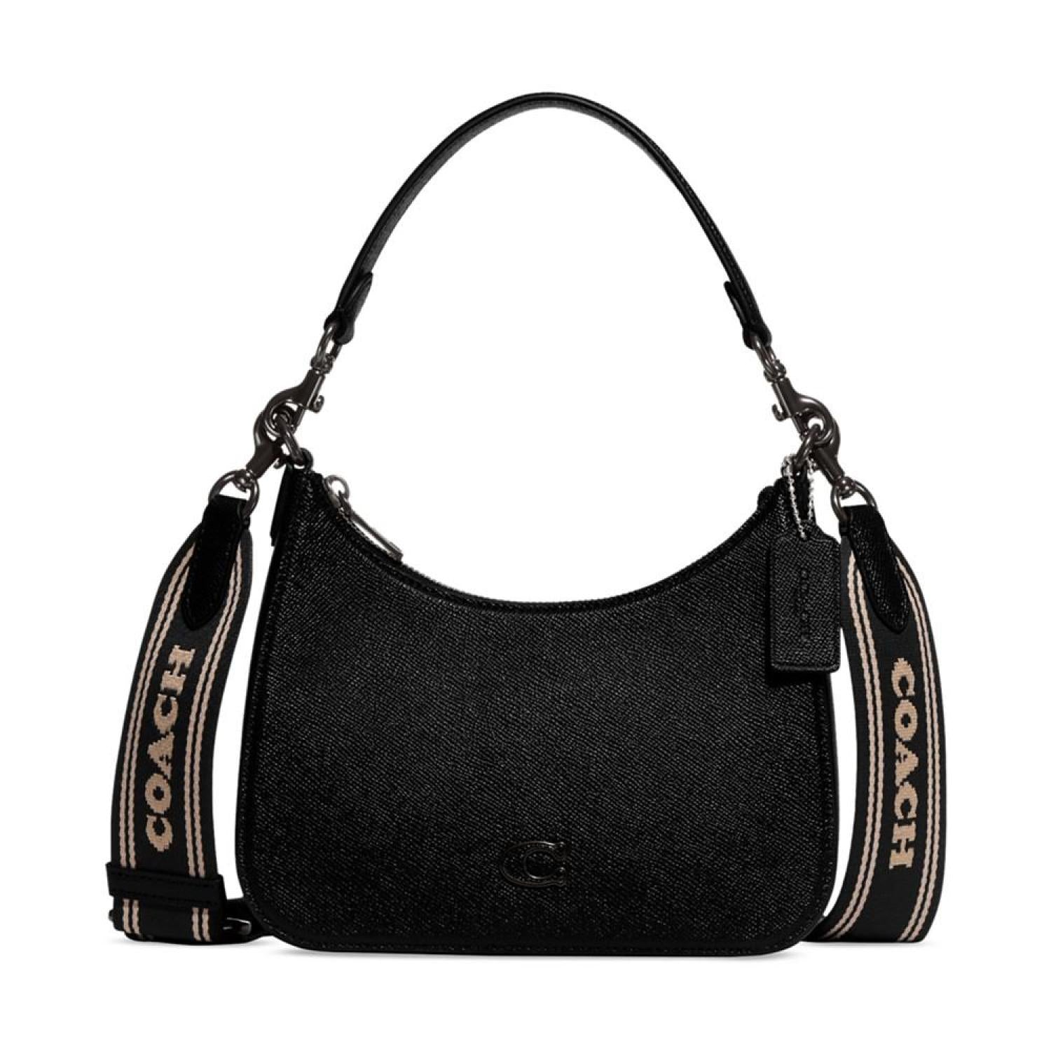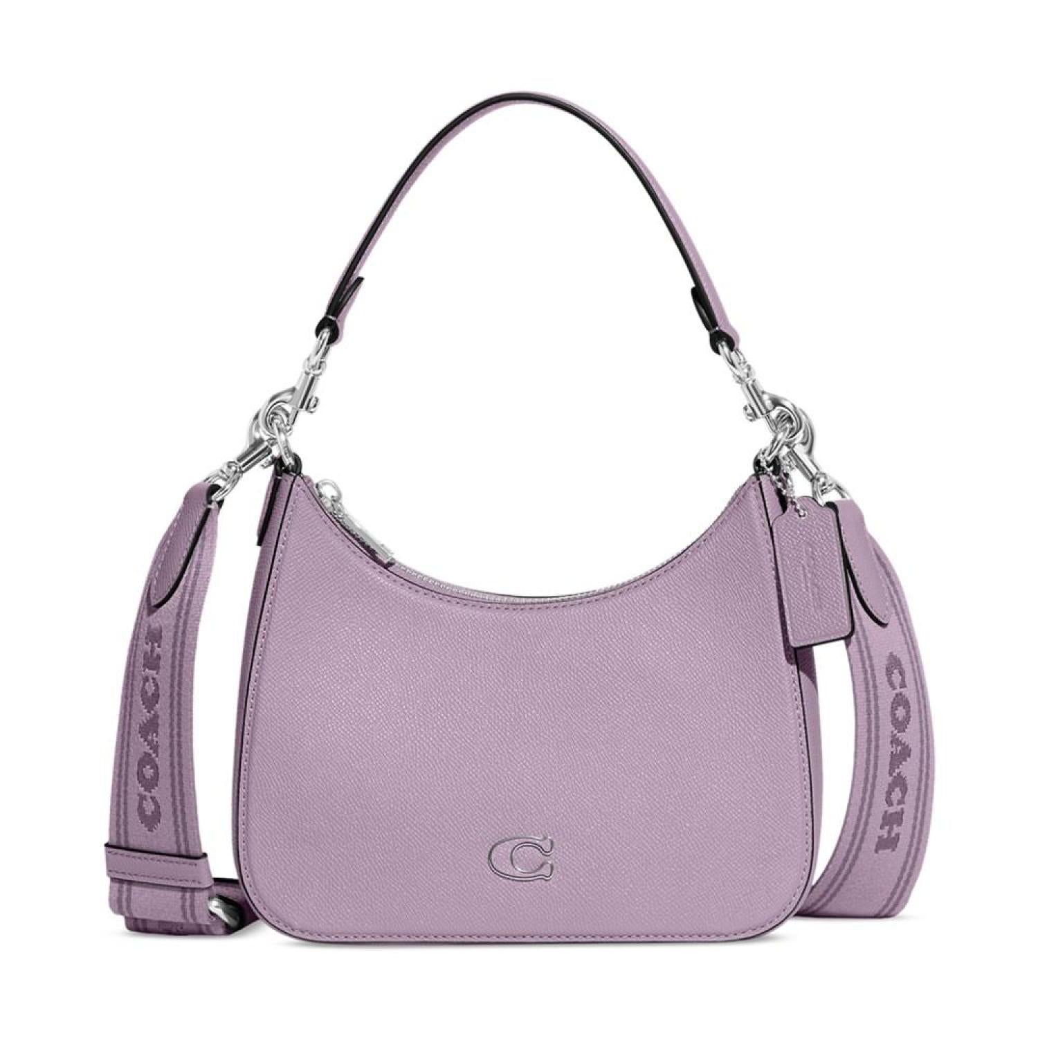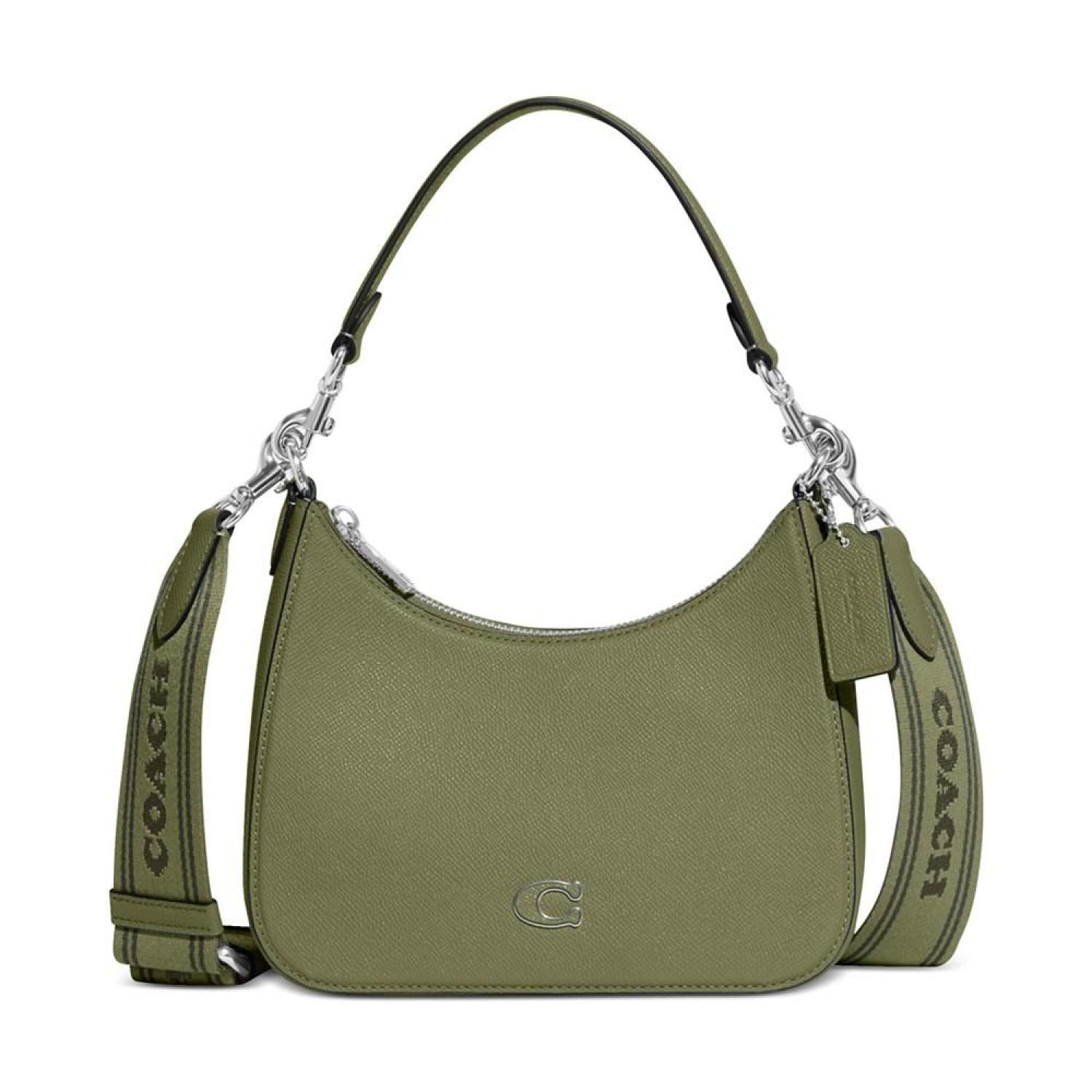 Compact with a classic silhouette, this Hobo Small Crossgrain Leather Crossbody by COACH offers multiple styling options for switching up your look. Small sized bag; 8-3/4"W x 7-1/4"H x 2-1/2"D (width is measured across the bottom of handbag); 1.1 lbs. approx. weight Silhouette is based off 5'9" model 8"L handle; 21-3/4"L crossbody strap & 25"L webbing strap Zippered closure Hardware tone varies by color Interior slip pocket Leather; lining: polyester Spot clean Imported
