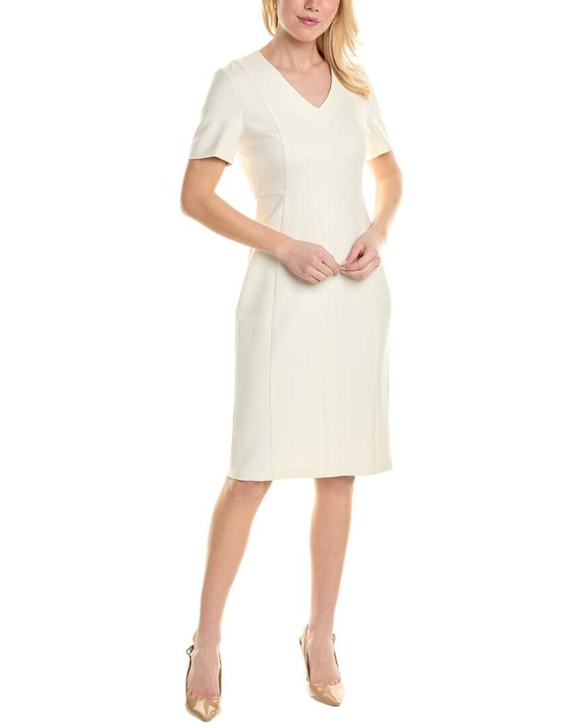 Introducing the elegant and sophisticated Hugo Boss Damaisa Mini Dress. This stunning dress is a perfect addition to your wardrobe, combining businesswear and athleisure with an individualist perspective. Crafted with attention to detail, this dress is designed in an open white color, exuding timeless charm. Its V-neckline adds a touch of femininity, while the center back zipper closure ensures a seamless and effortless fit. Measuring approximately 41 inches from shoulder to hem, this dress flatters your figure and accentuates your curves. The model wearing a size De 36/Us 4 stands at 5'10, proving that this dress is suitable for all body types. Please note that measurements may vary slightly by size. Made from a high-quality blend of 67% viscose, 29% polyester, and 4% elastane, this dress offers superior comfort and durability. The facing is crafted from 100% cotton for added softness against the skin. To maintain the dress's pristine condition, simply machine wash it. Its imported design ensures superior craftsmanship and attention to detail. Upgrade your wardrobe with the Hugo Boss Damaisa Mini Dress and experience the perfect blend of style and comfort. Elevate your look for any occasion, be it a formal event or a casual gathering. Embrace the allure of Hugo Boss and make a lasting impression with this must-have dress.
