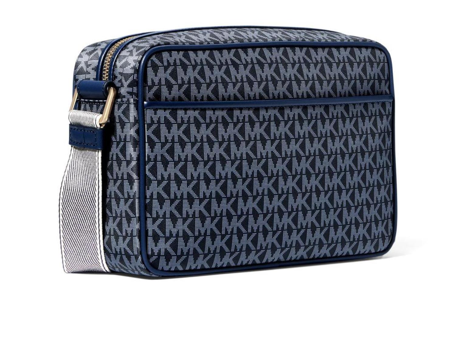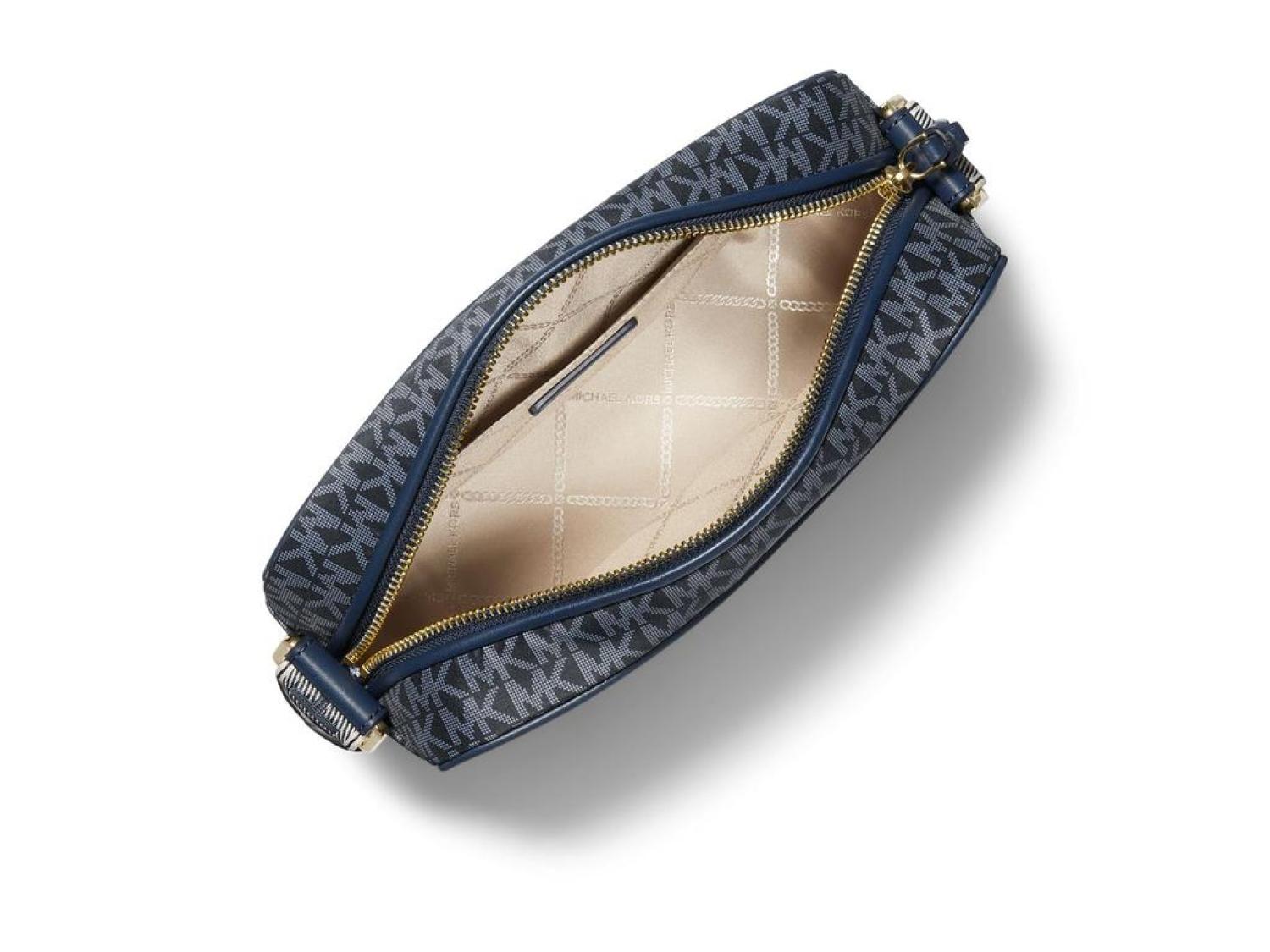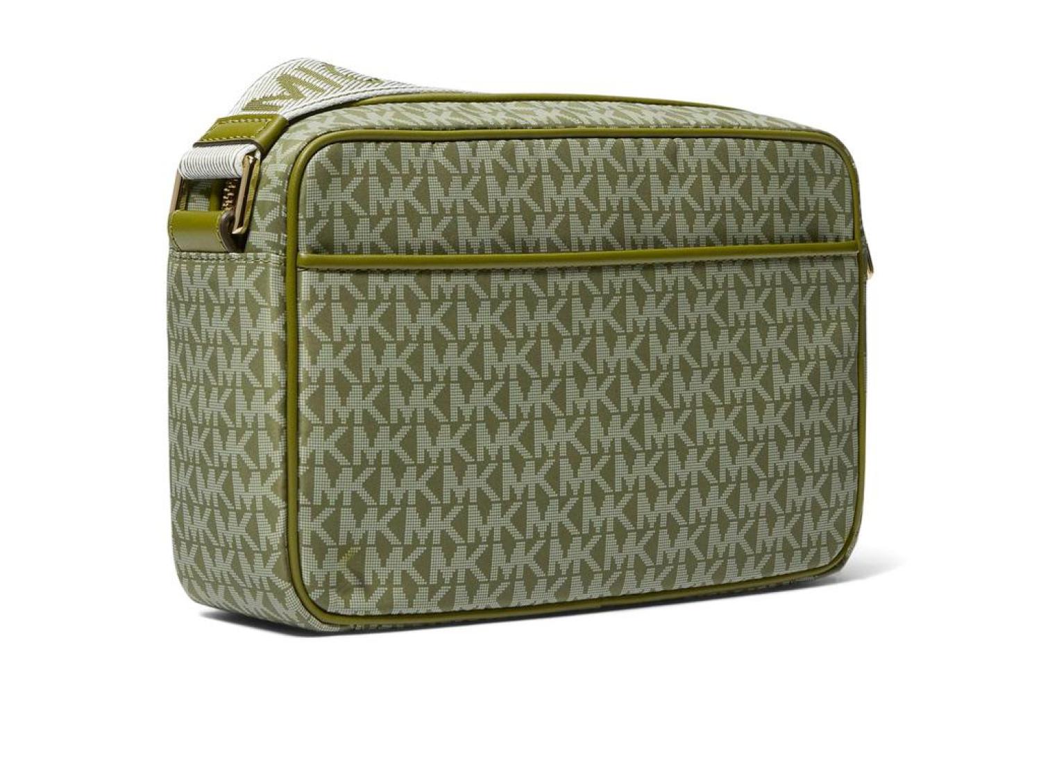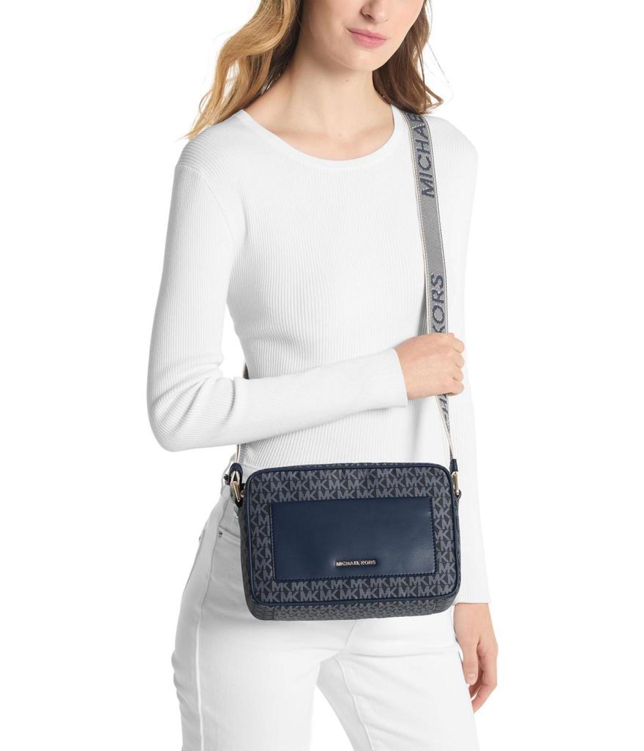 Make a chic statement carrying the MICHAEL Michael Kors® Jet Set Large East West Crossbody With Logo Web Strap. Constructed with durable nylon, this crossbody features a modern allover design that complements any outfit. The detachable and adjustable MK logo web strap allows for easy customization, while the zippered top closure keeps your belongings organized and within reach. Interior slip pocket. Exterior slip pockets on the front and back. Branding on the front. Polyester lining. Imported. Please note, the hardware color and interior lining may differ from the color shown in the photo.