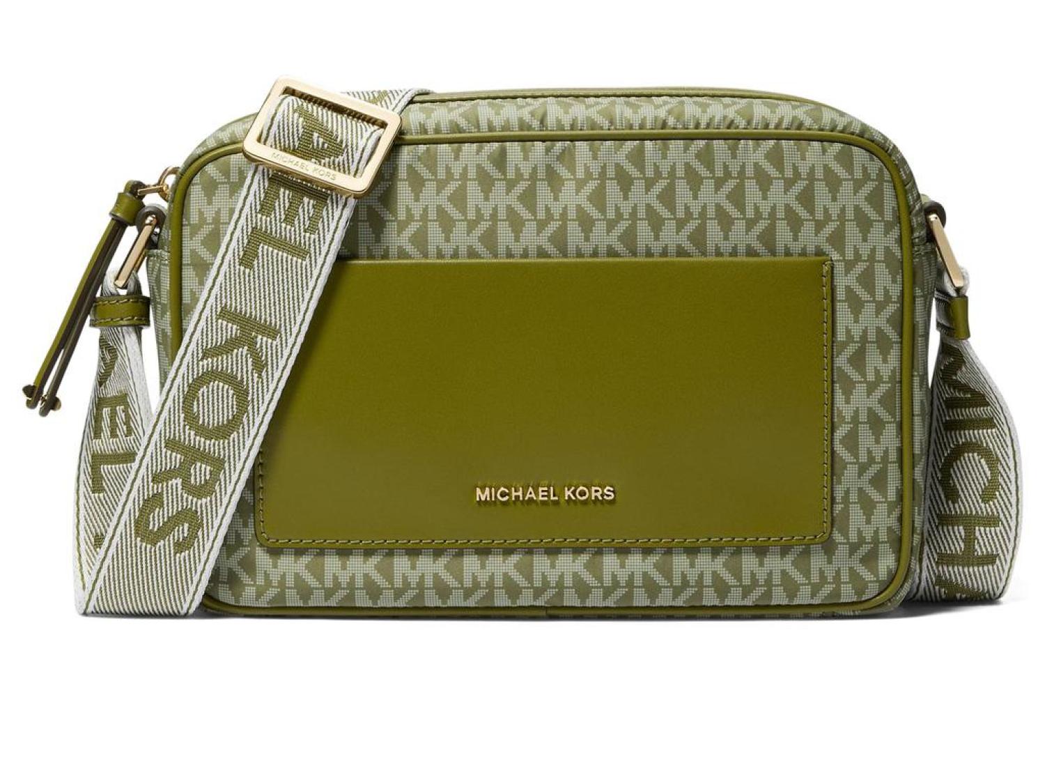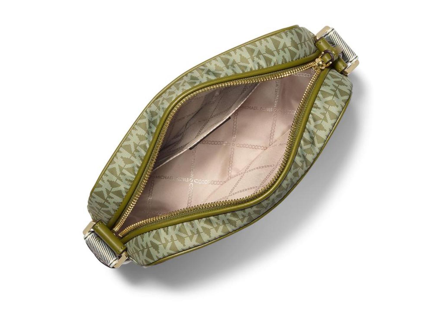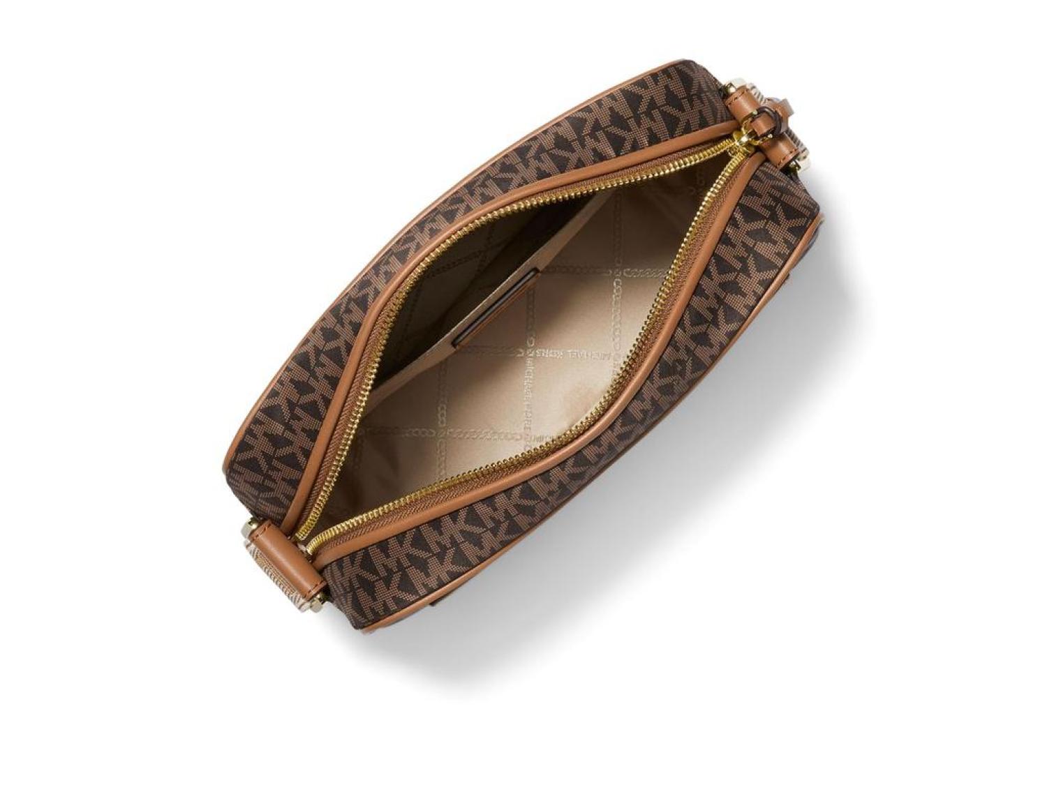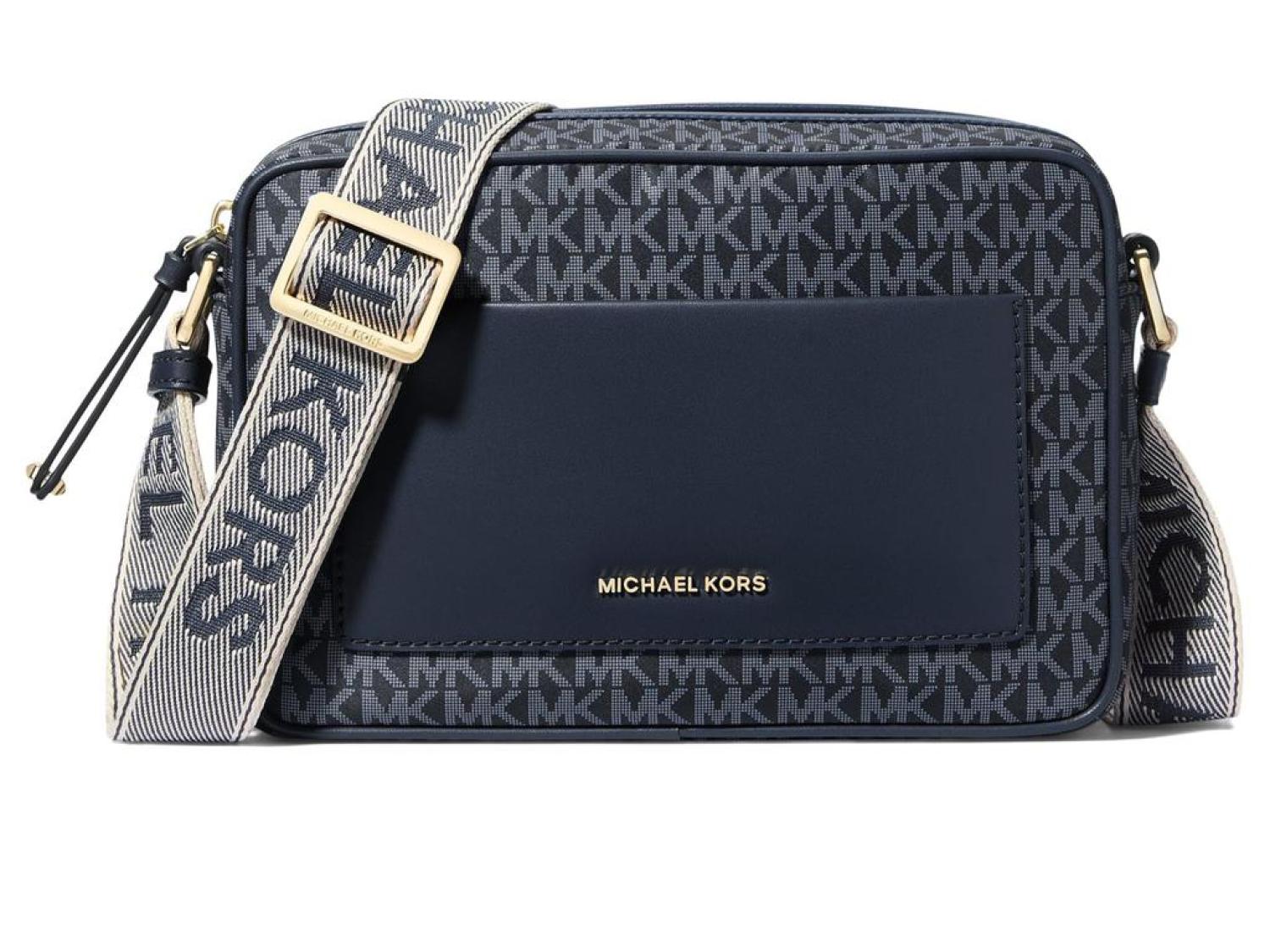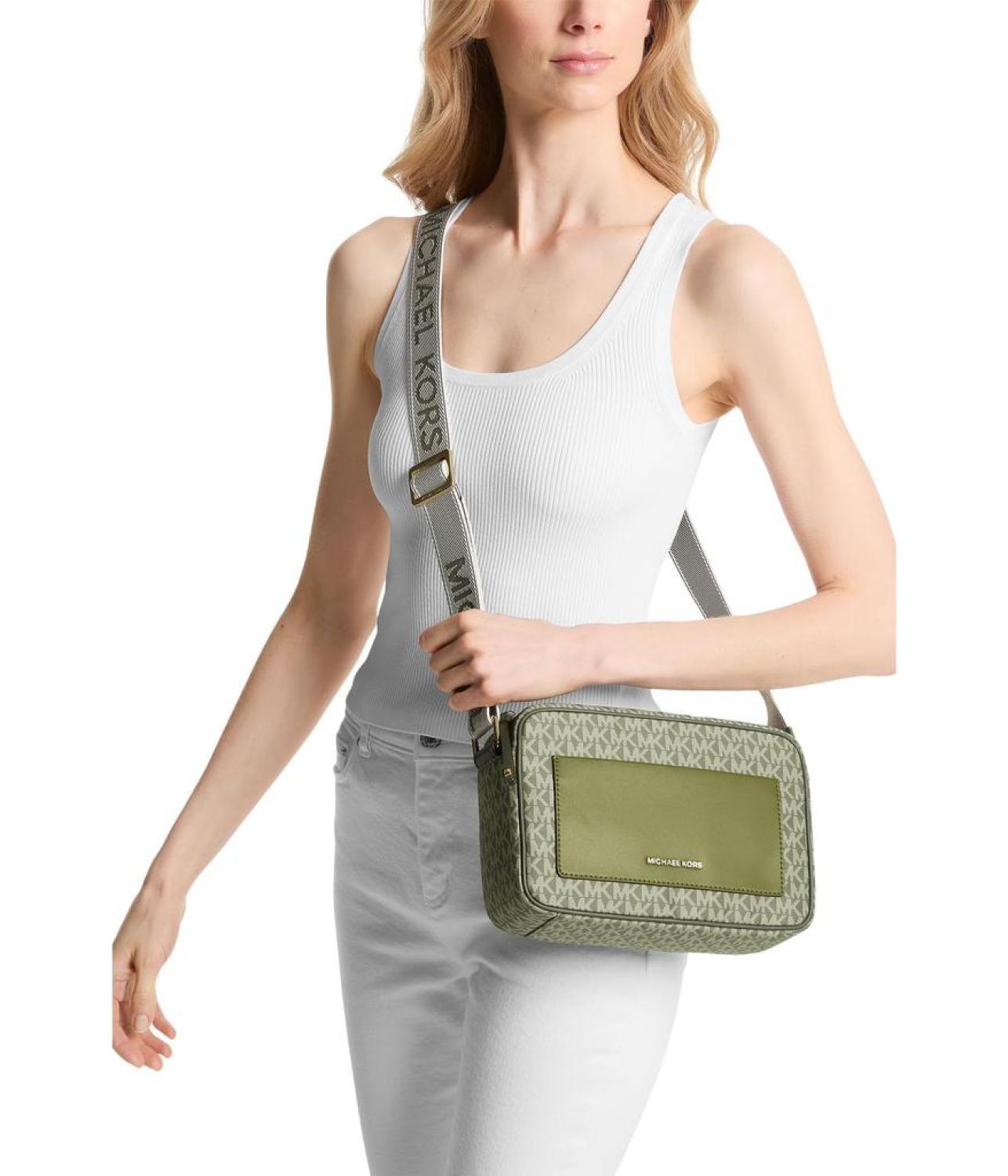 Make a chic statement carrying the MICHAEL Michael Kors® Jet Set Large East West Crossbody With Logo Web Strap. Constructed with durable nylon, this crossbody features a modern allover design that complements any outfit. The detachable and adjustable MK logo web strap allows for easy customization, while the zippered top closure keeps your belongings organized and within reach. Interior slip pocket. Exterior slip pockets on the front and back. Branding on the front. Polyester lining. Imported. Please note, the hardware color and interior lining may differ from the color shown in the photo.
