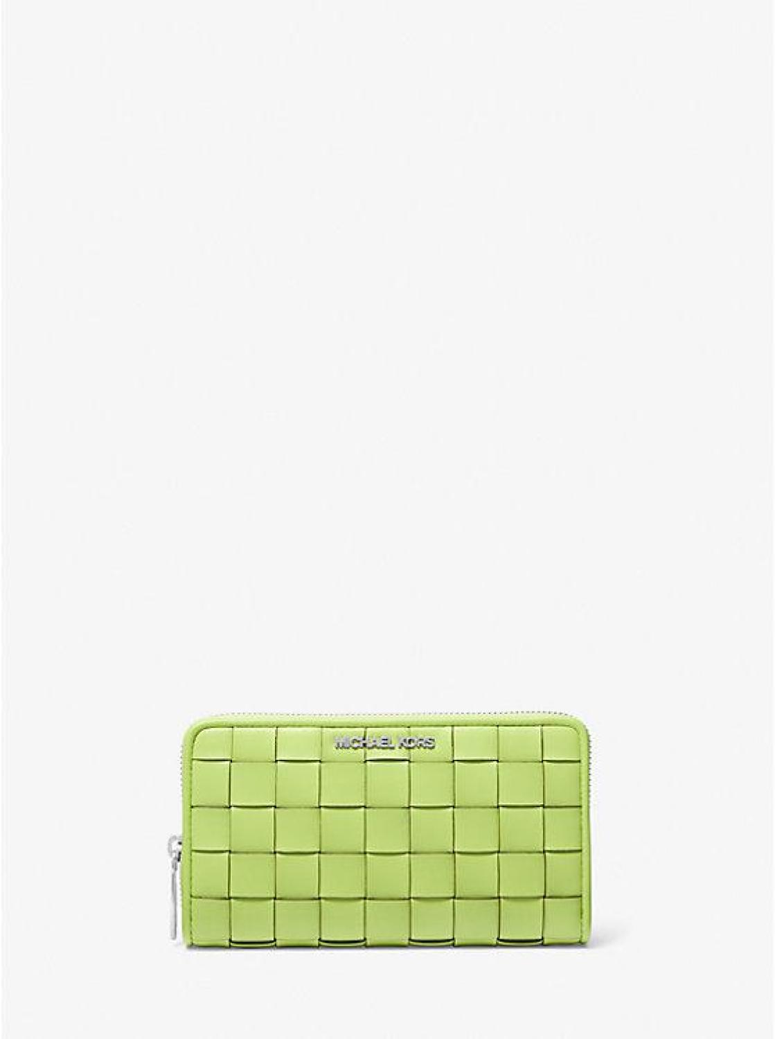 Defined by a sleek woven exterior, this slender wallet is designed in a zip-around silhouette that opens to reveal a pocketed interior for organizing your cards and cash. Toss it into your favorite tote on busy days, or carry it in hand as a casual clutch.