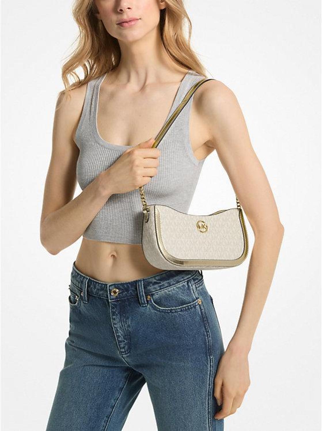 Evocative of ’90s style, the Leida boasts a slim, structured shape that fits snugly under your arm. It’s crafted from metallic logo-print canvas and detailed with a gilded chain-link strap that instantly adds tough-luxe appeal. Reach for it to stow evening essentials like your keys, phone and a lipstick for touch-ups. • Shoulder bag • Metallic logo-print canvas • 69% coated canvas/17% polyester/13% cotton/1% polyurethane • Trim: 60% polyurethane/20% cotton/20% polyester • Gold-tone hardware • 9.75”W X 5.25”H X 3.25”D • Interior details: front slip pocket • Lining: 100% polyester • Zip fastening • Imported • Shoulder bag • Metallic logo-print canvas • 69% coated canvas/17% polyester/13% cotton/1% polyurethane • Trim: 60% polyurethane/20% cotton/20% polyester • Gold-tone hardware • 9.75”W X 5.25”H X 3.25”D • Interior details: front slip pocket • Lining: 100% polyester • Zip fastening • Imported
