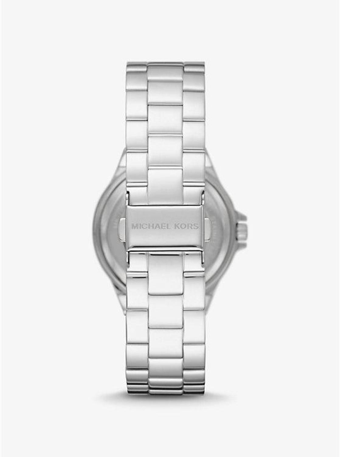 Your favorite Lennox watch gets updated with our “MK” initials for a novelty statement. It’s beautifully crafted from silver-tone stainless steel and encrusted with shimmering pavé accents for maximum impact. Consider it the perfect finishing touch to evening outfits. Watch Stainless steel Silver-tone hardware Logo and pavé topring Mid-sized 37mm case Quartz/3-hand movement Clasp fastening Water resistant up to 5 ATM 2-year warranty Imported Watch Stainless steel Silver-tone hardware Logo and pavé topring Mid-sized 37mm case Quartz/3-hand movement Clasp fastening Water resistant up to 5 ATM 2-year warranty Imported