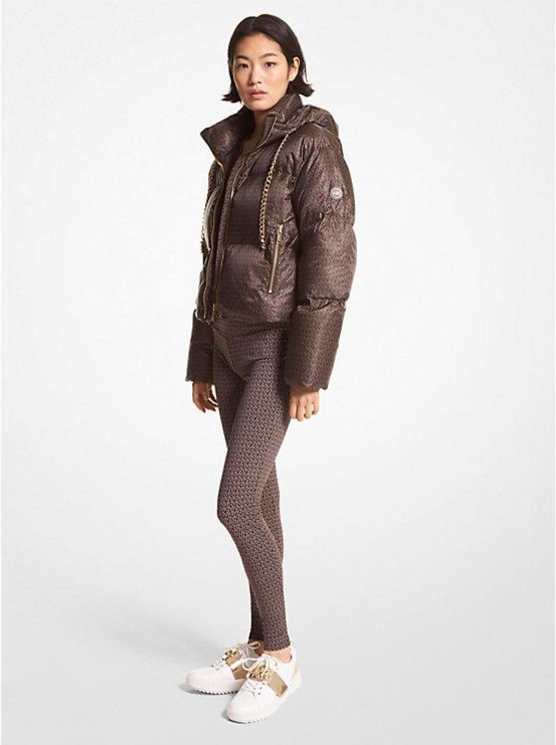 • Take a heritage-chic approach to bundling up with our Signature-print jacket. Complete with a chain-trimmed hood, this quilted puffer style is crafted from recycled polyester and filled with a combination of down and feathers for warmth. Showcase the cropped length with the season’s sweater dresses.