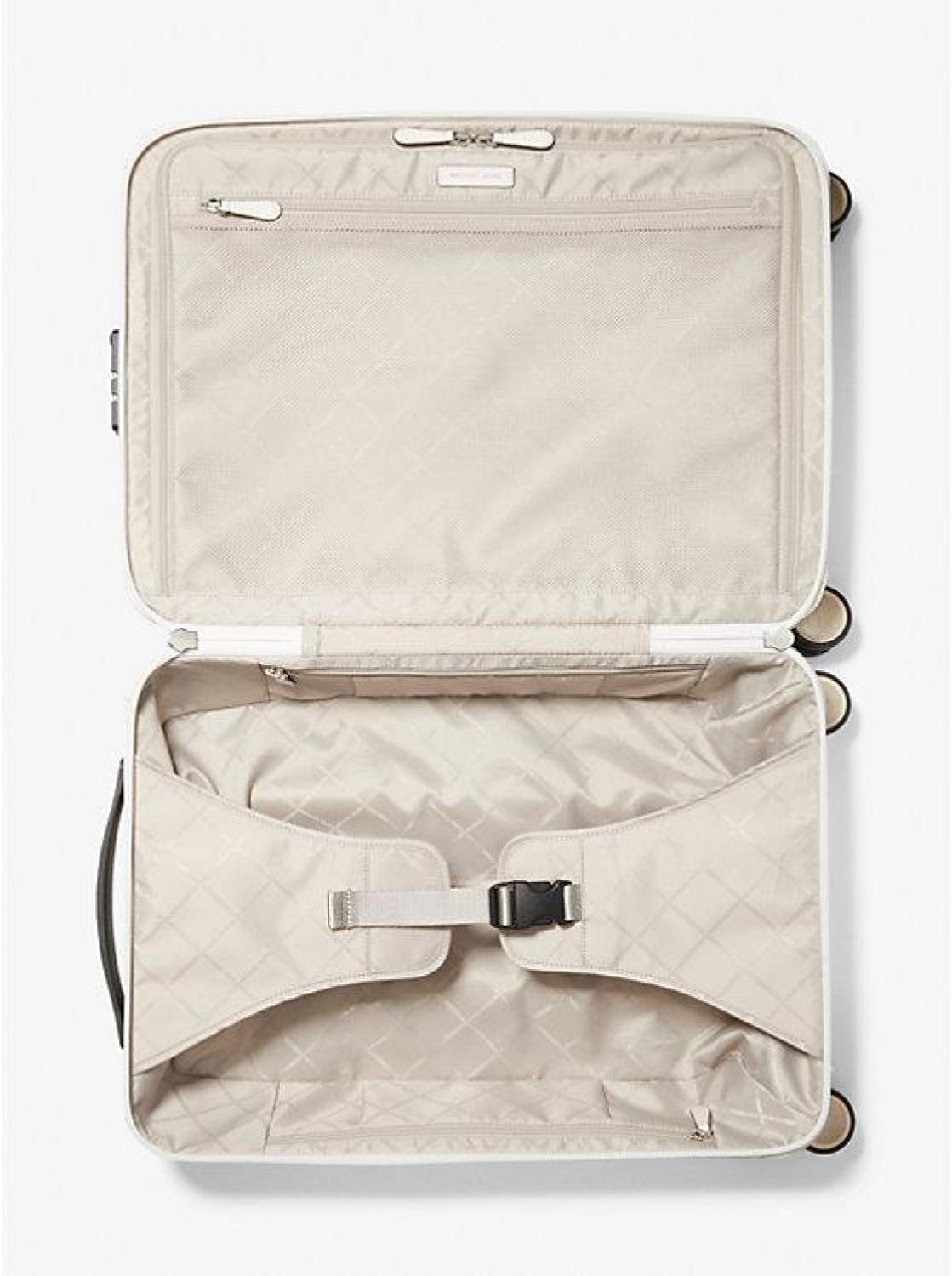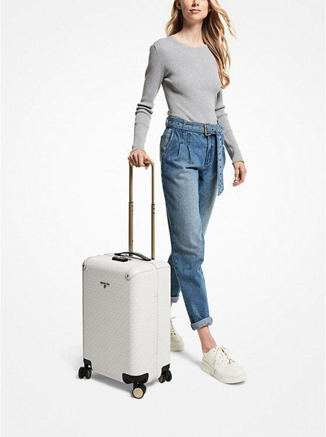 • Our Signature-print canvas suitcase is the definition of first-class style. Complete with reinforced leather corners and sleek hardware, this glamorous carry-on features 360-spinning wheels and opens to a compartmented interior that will keep your essentials in place during long-haul flights.