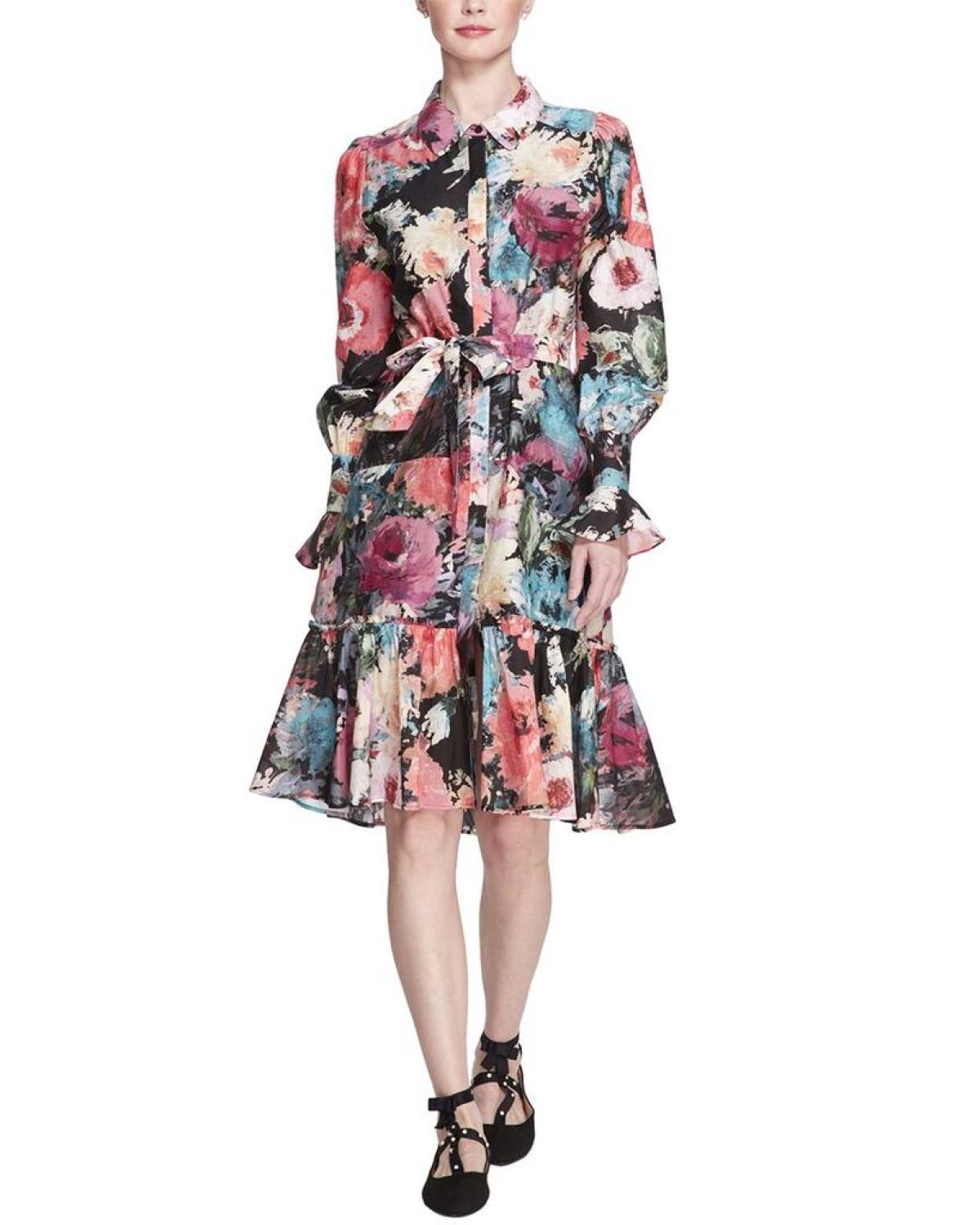Elevate your evening wardrobe with the Marchesa Notte Danica Printed Dress. Featuring a stunning black multicolor print, this dress is perfect for gowns and cocktails for that special night. Crafted from a luxurious blend of 70% cotton and 30% silk, this dress is both elegant and comfortable. The Danica dress measures approximately 39.875 inches from shoulder to hem and is designed to flatter your figure. Make a statement at your next event with this imported, dry clean only dress from Marchesa Notte.
