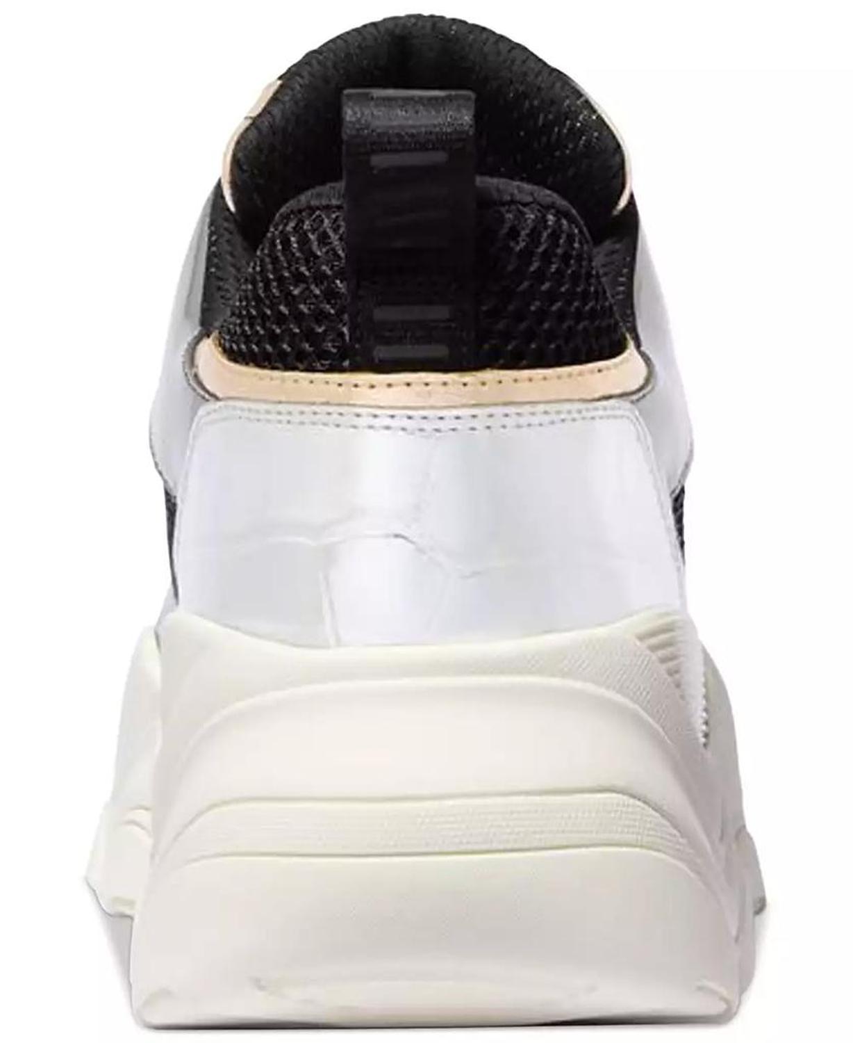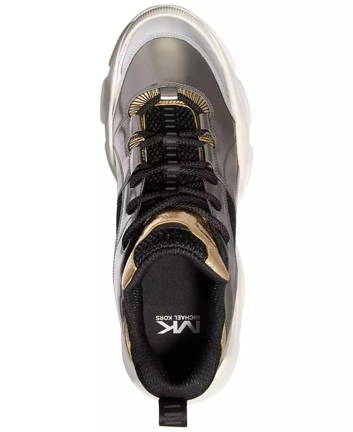 Metallic-tone styling across the upper of these Atlas Trainer Sneakers by Michael Kors lend them a dynamic, futuristic, and metropolitan look. Plain toe Lace up Removable cushioned insole; padded collar for comfort; sock liner; extended mud guard Flexible and durable rubber sole Upper panels with smooth and croc embossed leather in metallic gold/silver/pewter-tones; tonal brand logo on upper tongue Leather, polyester upper; polyester lining; rubber sole Spot clean Imported