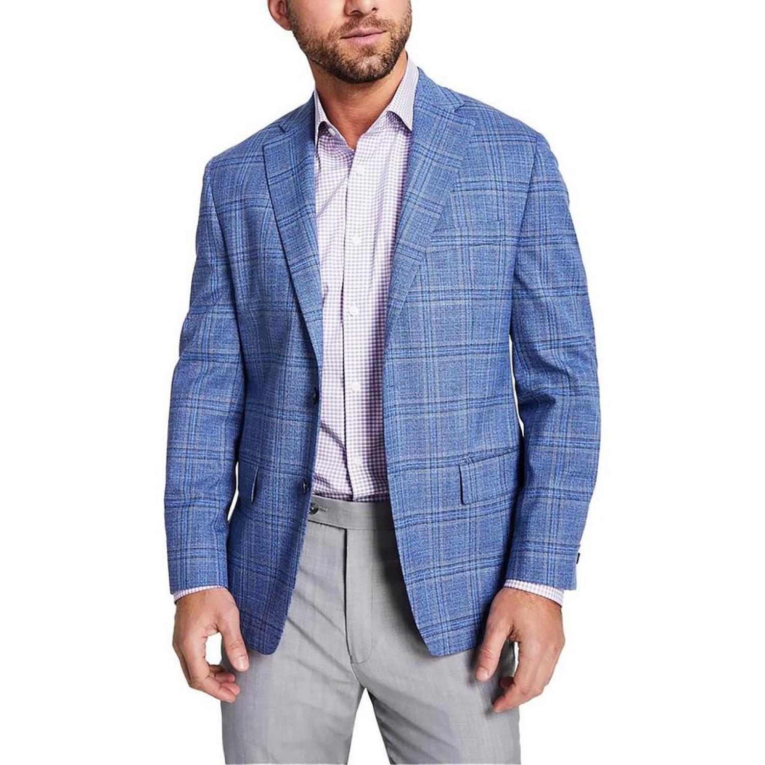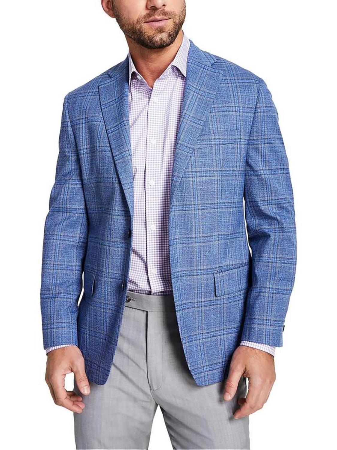 Mens Plaid Recycled Polyester Two-Button Blazer