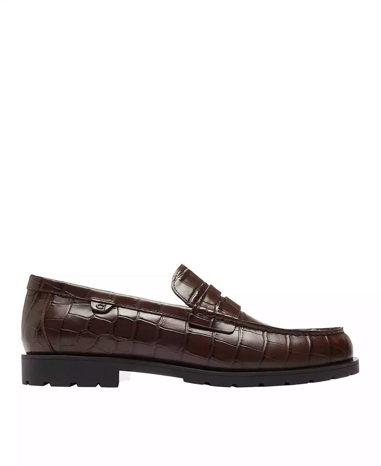 A modern update on a timeless style, our Reagan loafer features a rugged rubber lug sole. Finished with a traditional penny-keeper, the wear-with-everything design is crafted of distinctive crocodile-embossed leather with a subtle shine. Round Toe Slip on Rubber outsole Man-made leather lining, leather footbed This item purchased online must be returned to the vendor by mail only. This item cannot be returned to Macy's stores. Leather upper Spot clean Imported